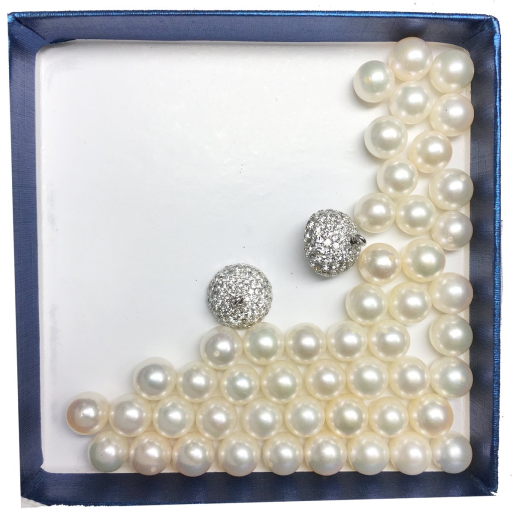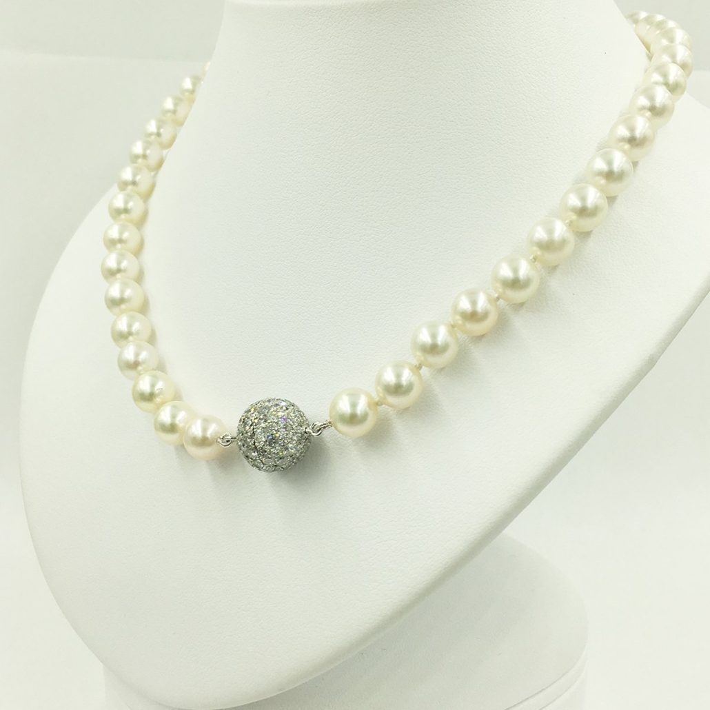 Akoya cultured pearl choker with diamond ball clasp. Simple yet fancy.