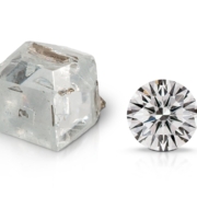 A synthetic diamond (left) and a natural diamond (right) can appear identical to the naked eye.