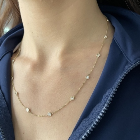 20″ 14k yellow gold Diamonds On A Chain Station Necklace 1715-42 6950
