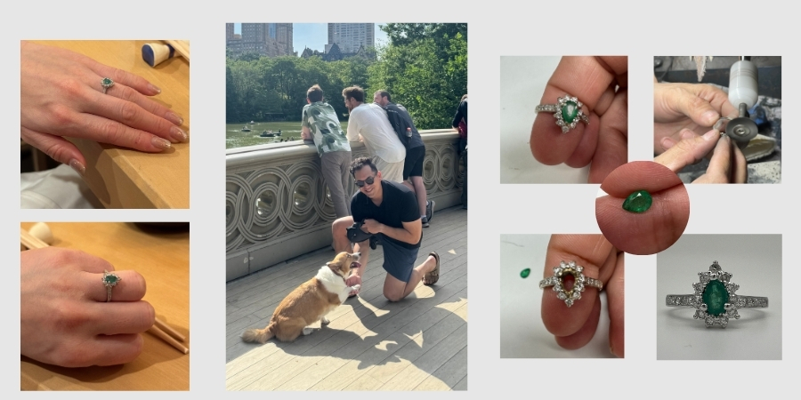 While we worked, he was preparing something of his own — a proposal at Bow Bridge, his favorite spot in Central Park. He even practiced with his dog, Coco, kneeling on the bridge for a trial run. When the ring was ready, it was nothing short of stunning the perfect blend of legacy and renewal. On a bright summer day, with the city around them and love in the air, he got down on one knee. She said “yes.” In that moment, a cherished heirloom found new meaning, and a beautiful love story came full circle.