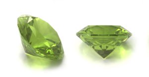 Peridot is the gem variety of the mineral olivine. Its chemical composition includes iron and magnesium, and iron is the cause of its attractive yellowish green colors.