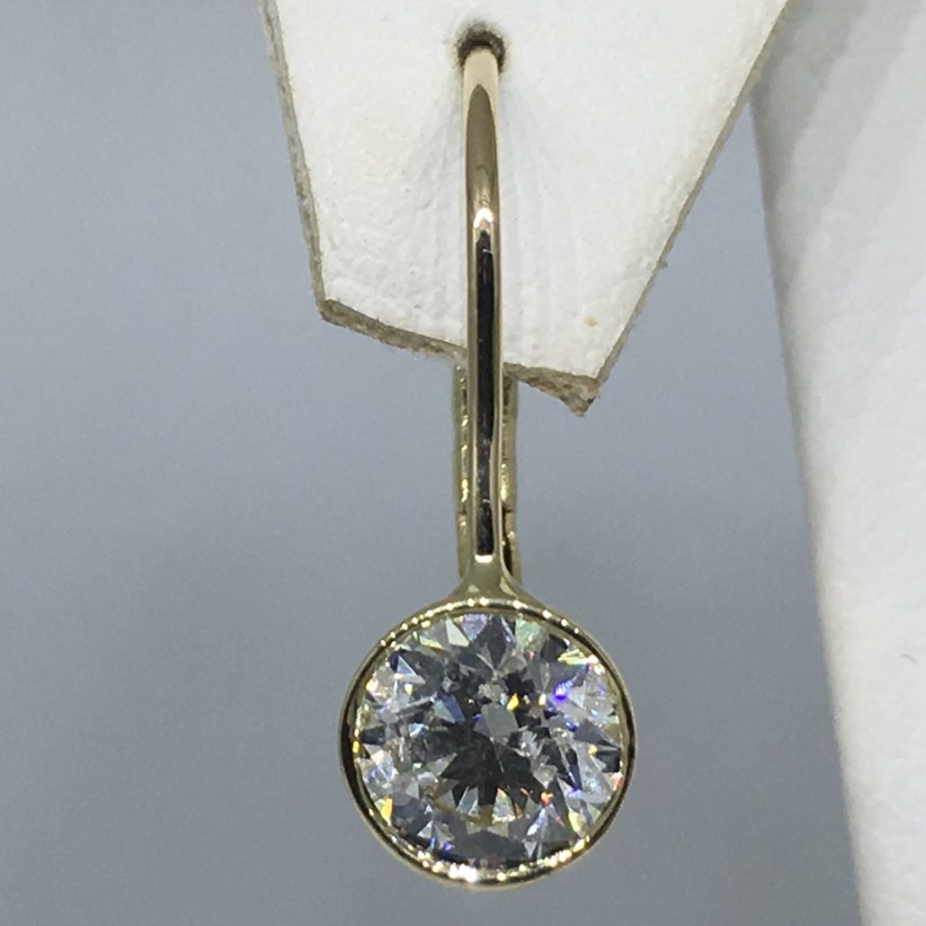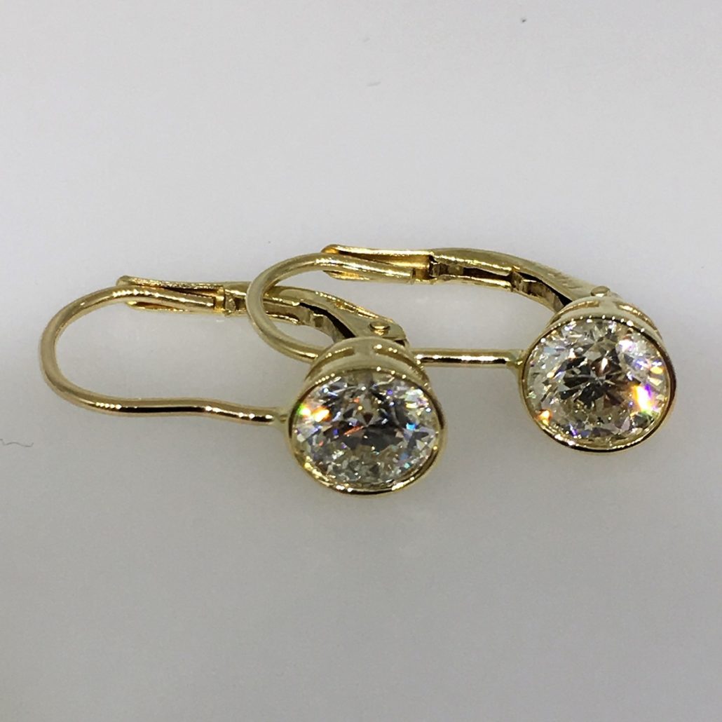 These earrings are made with natural mined round brilliant diamonds set in bezels and dangling with leverbacks.