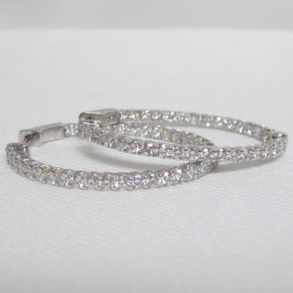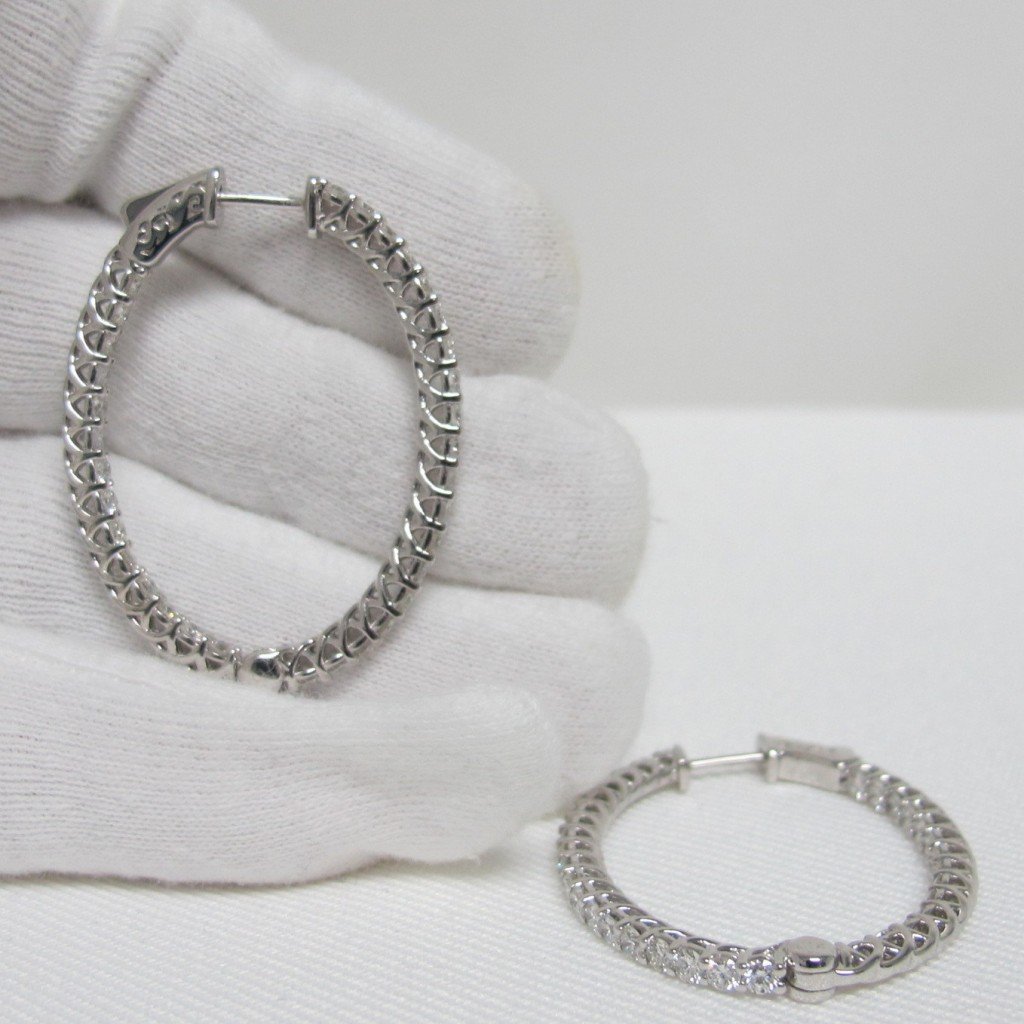 Tags 14K White Gold Diamond Hoop Earrings, Diamond Hoop Earrings, Diamond Hoops, Inside Out Design, Patented Core Lock