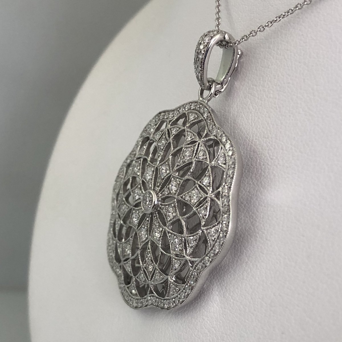 1 1/2 Inch Victorian Diamond Scalloped Pendant.  Open Design with Millgrain.