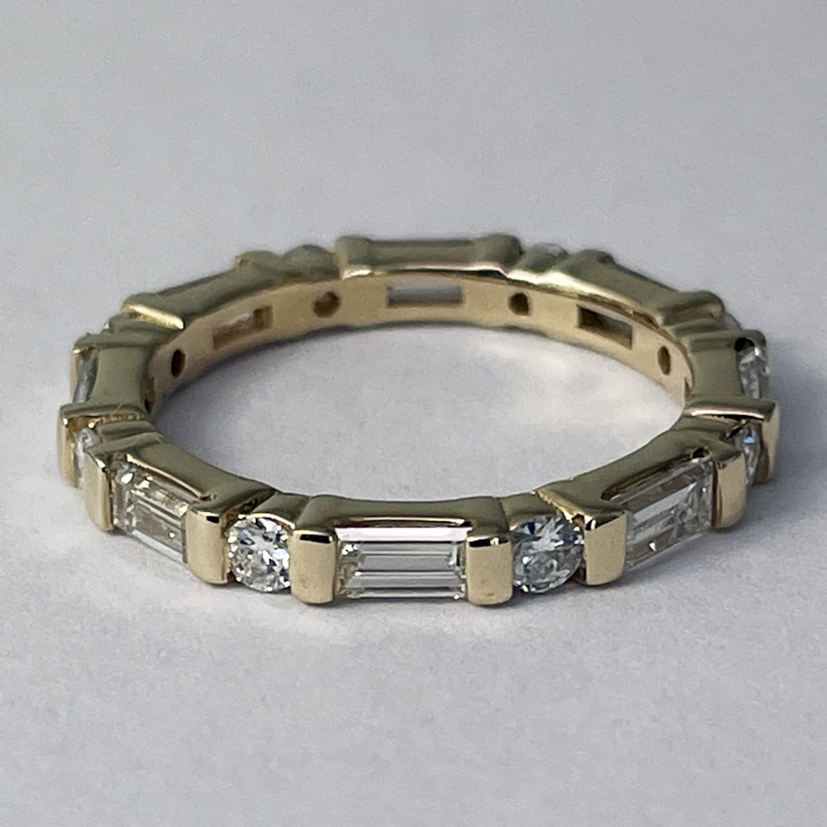 Tags baguette, Gold Diamond Eternity Ring, Golden Eternity Ring, Heirloom, Multi-Stone Wedding Band, One-Of-A-Kind, Round Brilliant, yellow gold, Yellow Gold Diamond Eternity, Yellow Gold Diamonds