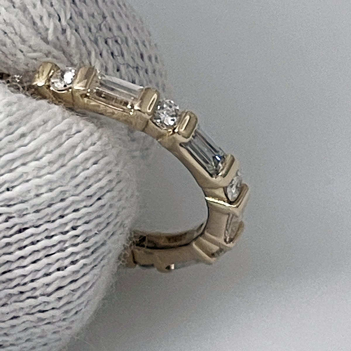 Baguette and round brilliant diamonds set in 14K Yellow Gold alternate in this heirloom diamond eternity band.