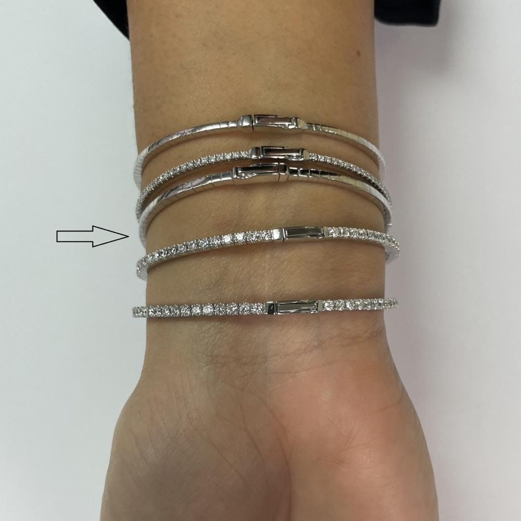 This bracelet is made with 14k white gold and prong set natural round brilliant diamonds.