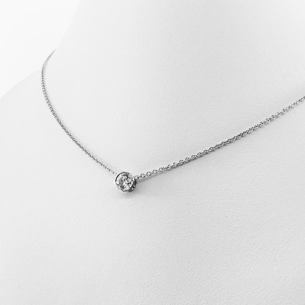 / 14kwg Bezel Set Diamond Pendant Necklace 7341-31