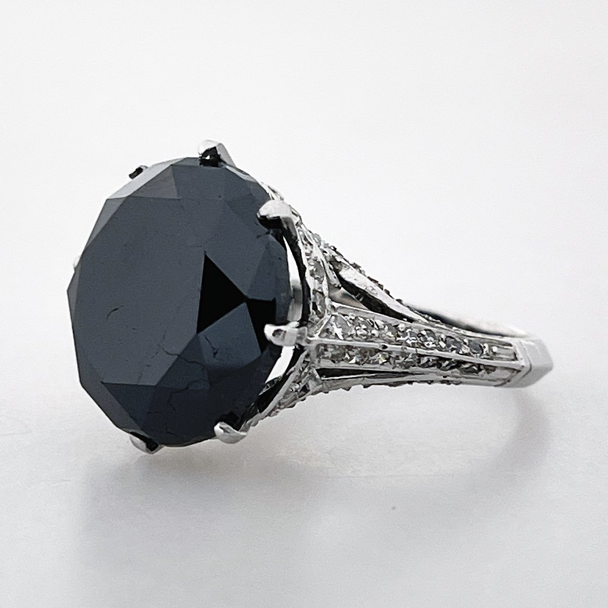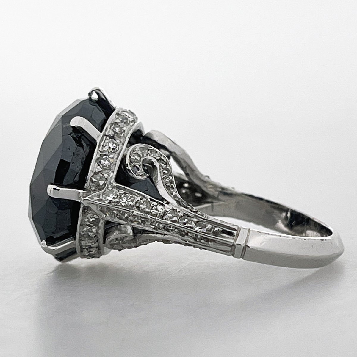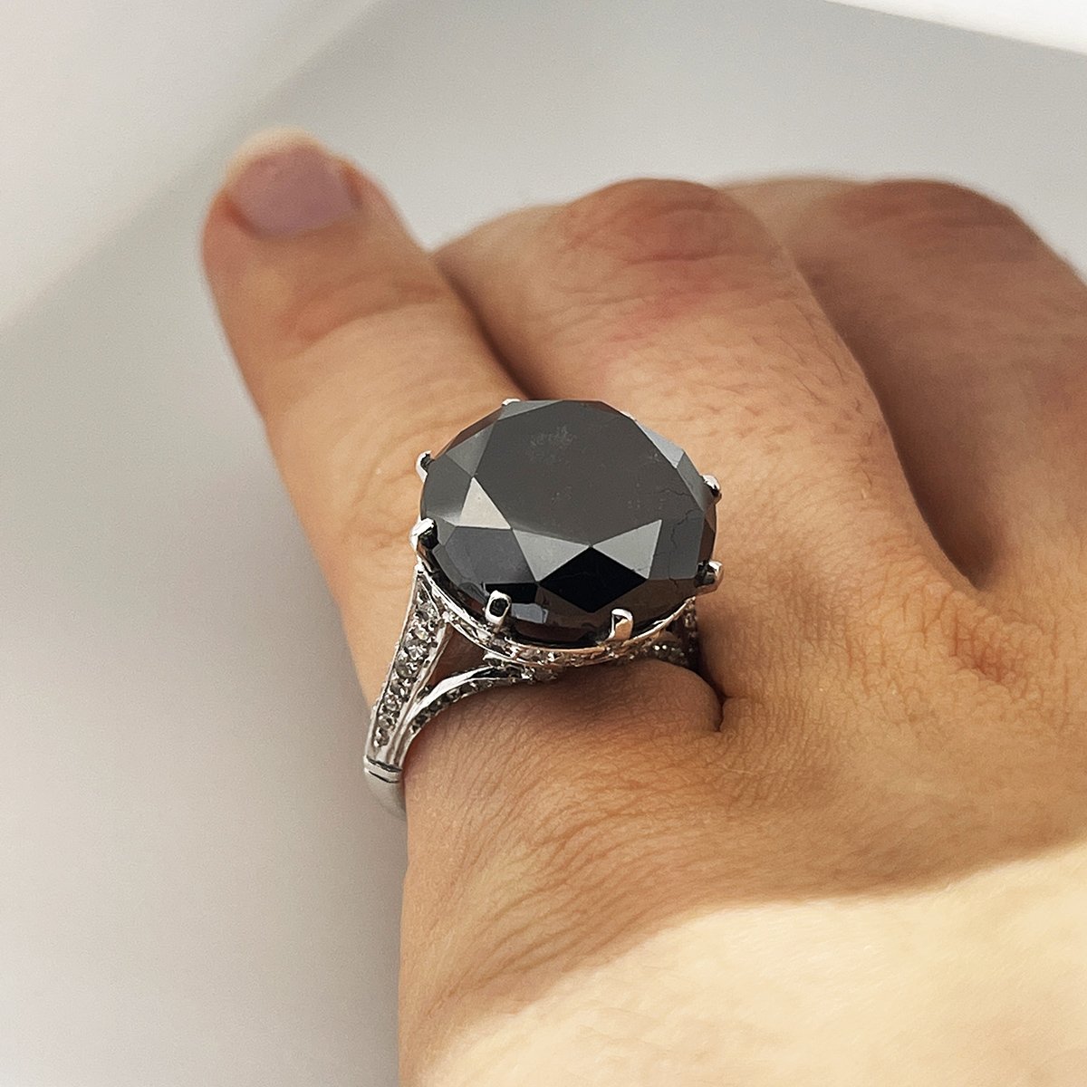 This ring features a large black diamond against white diamonds, set in white gold. A striking statement piece!