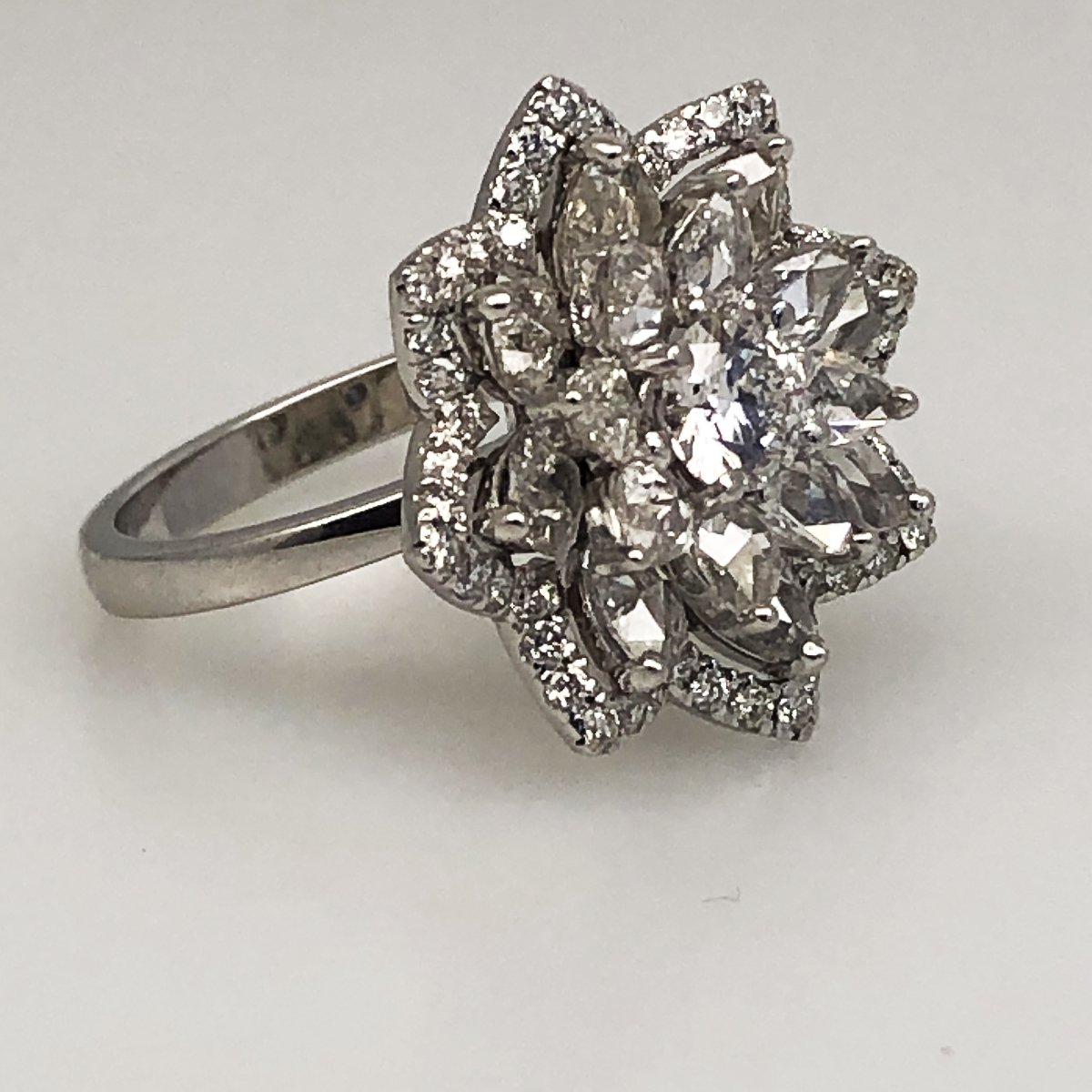 Tags 18K White Gold, Diamond Lotus Flower, diamond ring, Fancy Diamond Ring