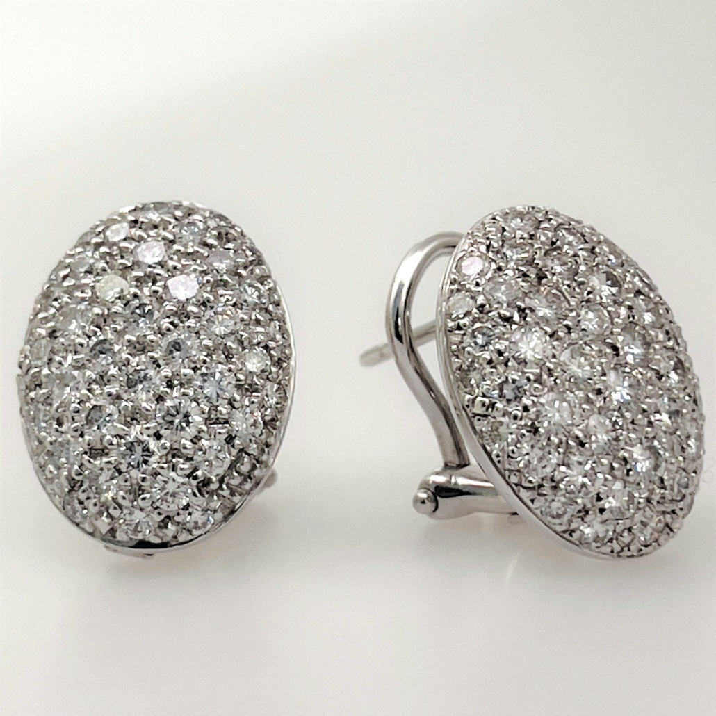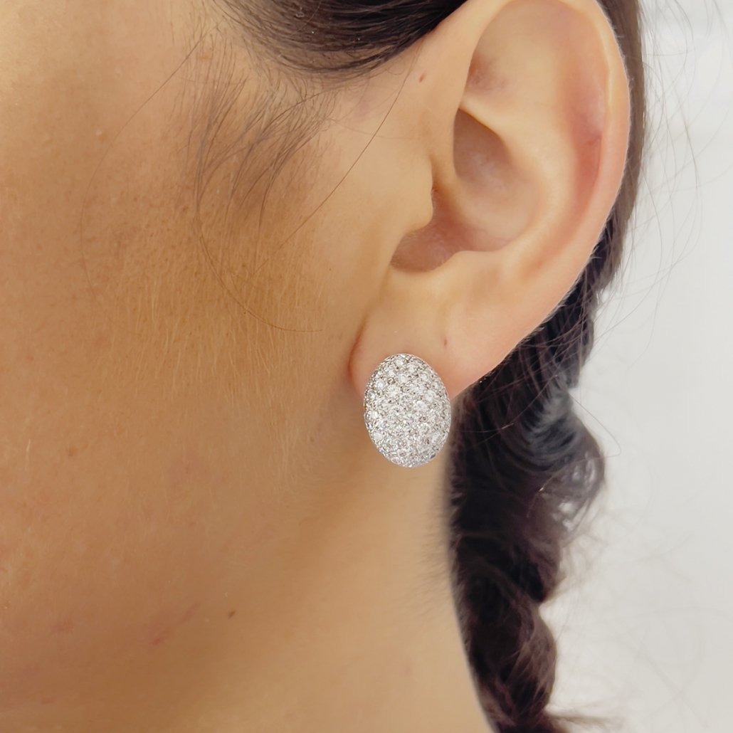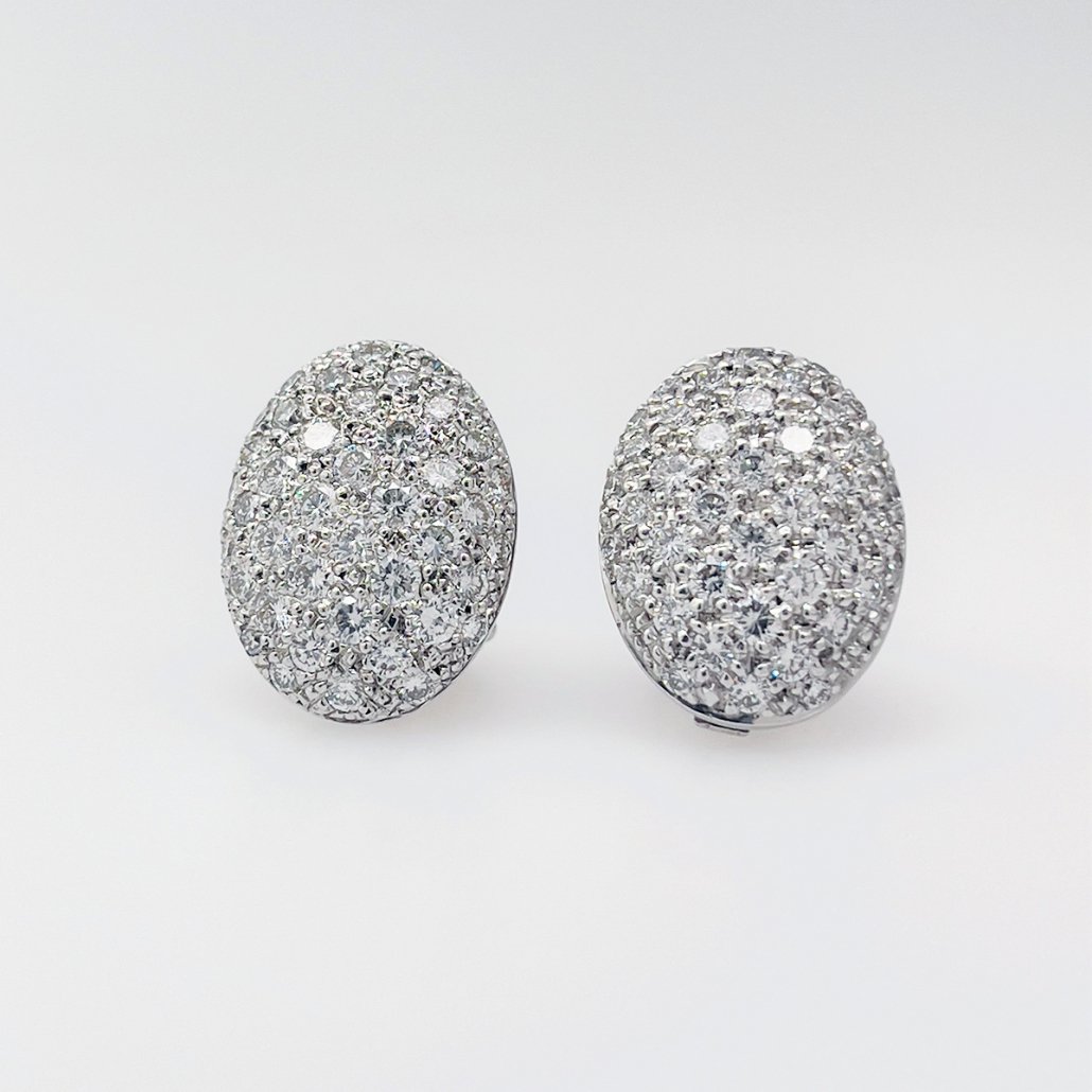 Tags 18K White Gold, Diamond Earring, Oval Cluster Stud Earrings, Stardust