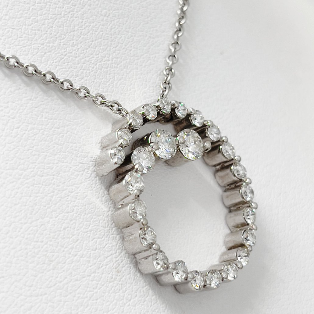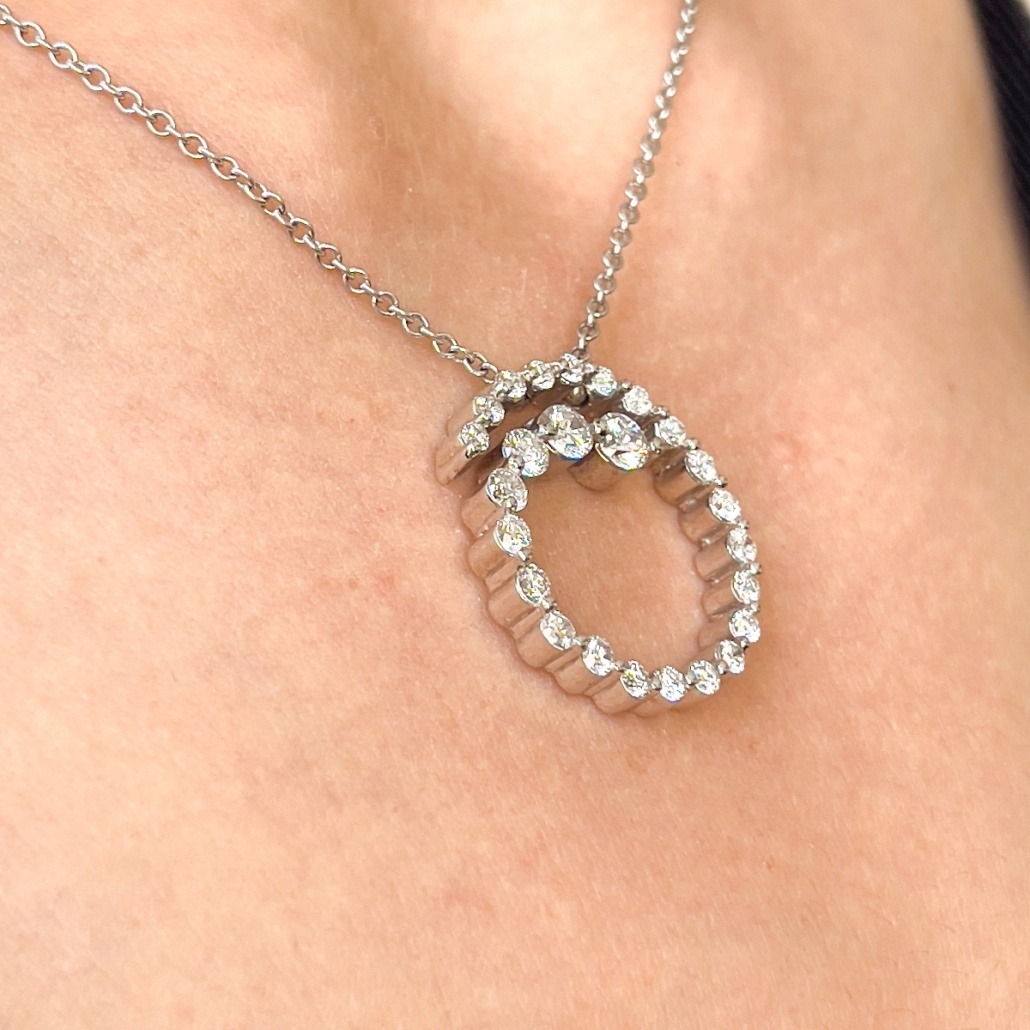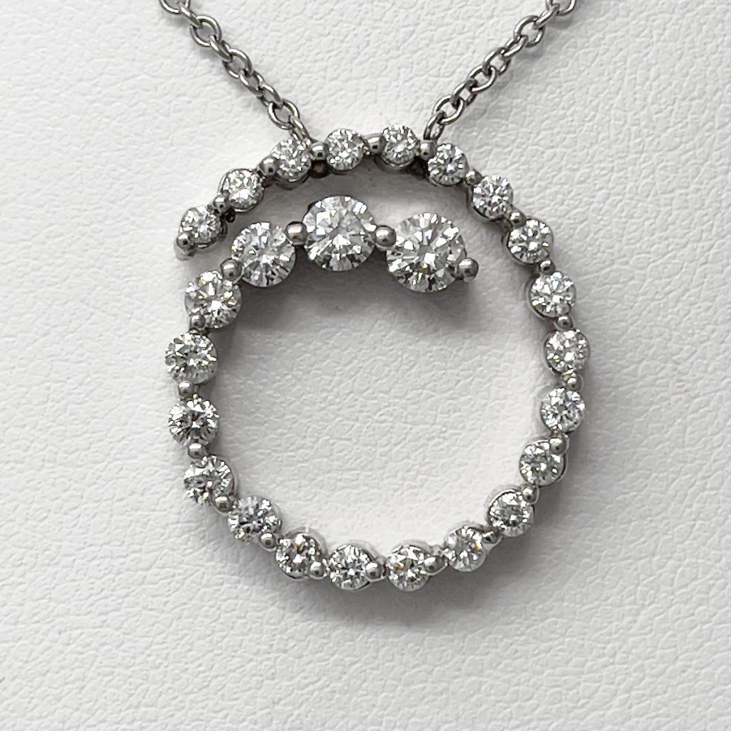 18k White Gold Spiral Swirl of Diamonds Pendant Necklace 2044-43