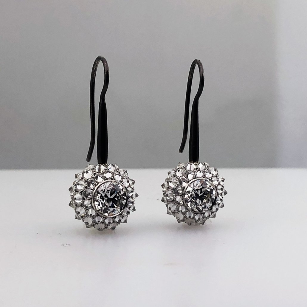 Tags Anatoly, Diamond Ball Earrings, Diamond Drop Earrings, Diamond Earrings, disco balls, Platinum, White Gold