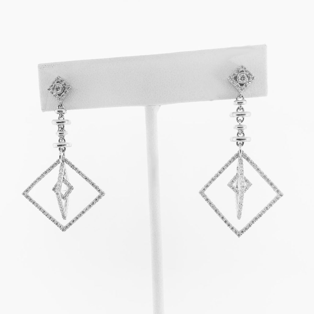18K White Gold and Diamond Geometric Dangling Earrings