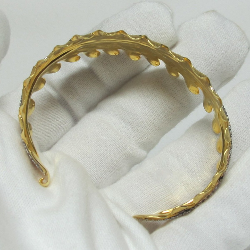 Tags Bangle, Bracelet, Custom Bracelet, Custom Leaf Bangle, Diamond Accent Line, Diamonds, Leaf, Leaves, White Gold Also Avaialble