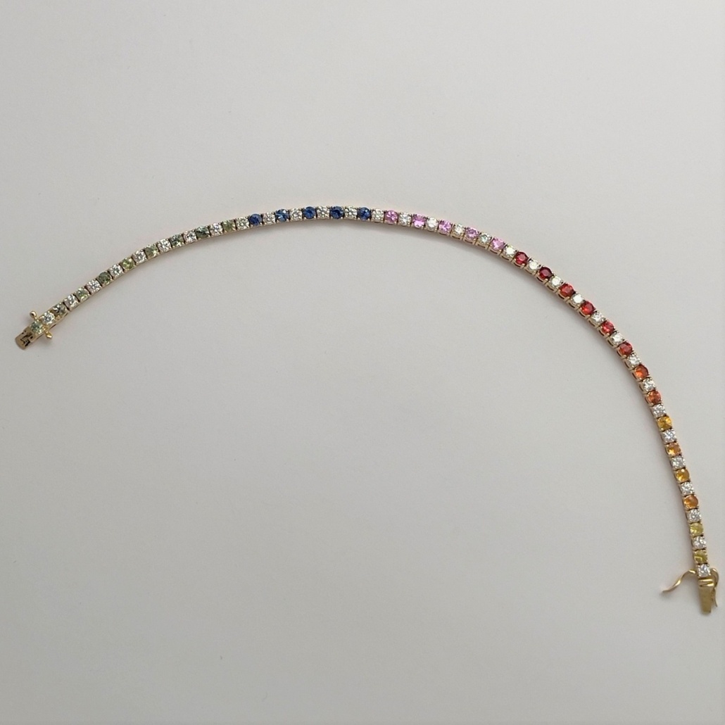 Tags Multi Color Bracelet, Multi-Colors Sapphire, Rainbow Bracelet, Rainbow Tennis Bracelet, Sapphire Bracelet, Sapphire Links Bracelet, Yellow Gold Sapphire Bracelets