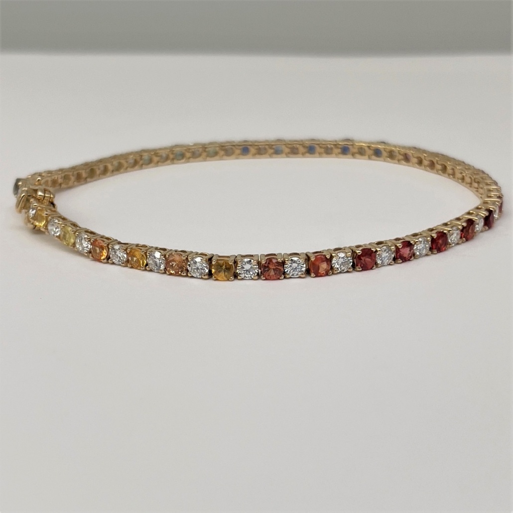 This Colorful Bracelet Is Made With Multi-Colored Sapphires Set On 14k Yellow Gold And Accompanied By Round Brilliant Cut Diamonds