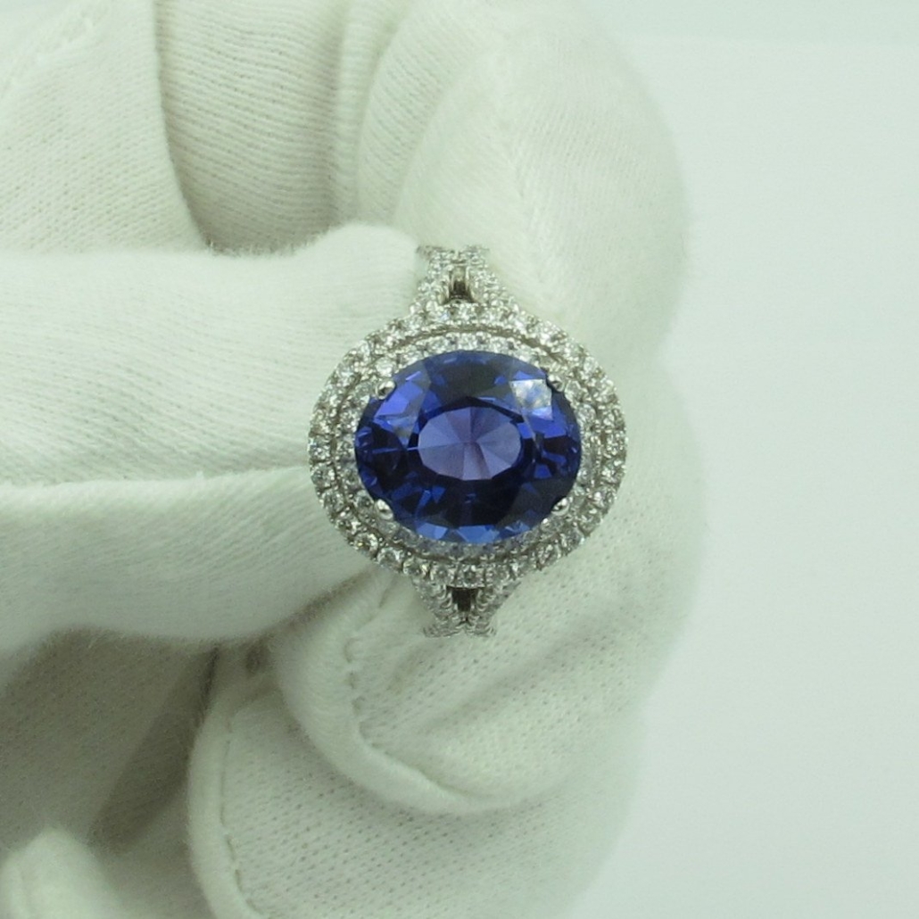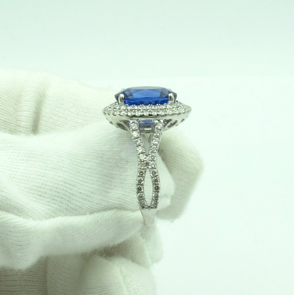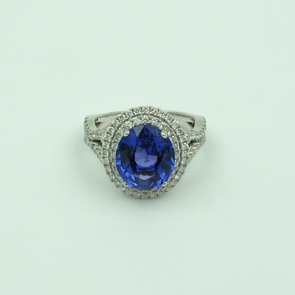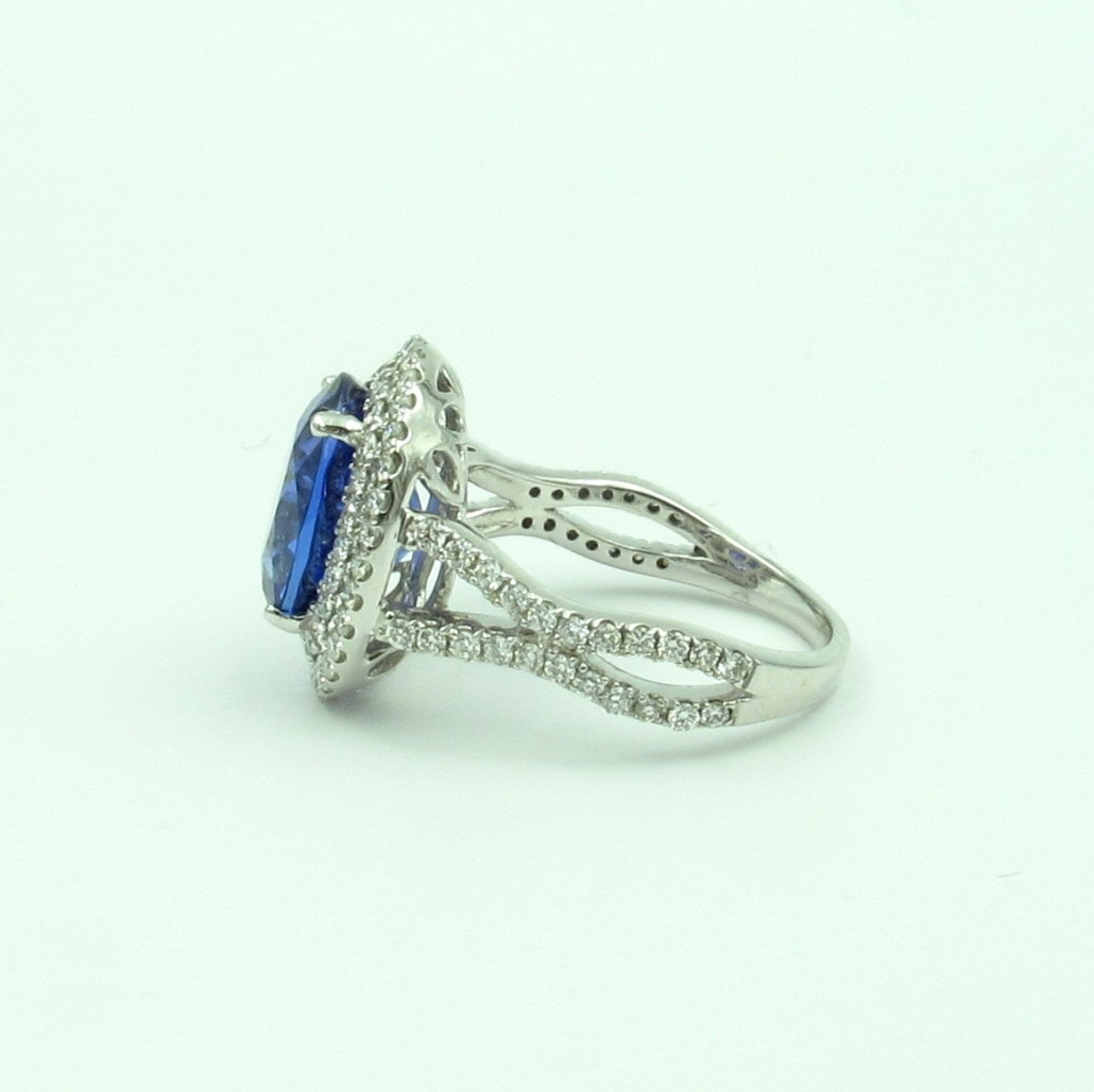 Tags 18k White, Blue, Desire, Diamond, double halo, Elegant, Four Prongs, gemstone, Halo, Oval, Shared Prongs, tanzanite, Vintage, Wave