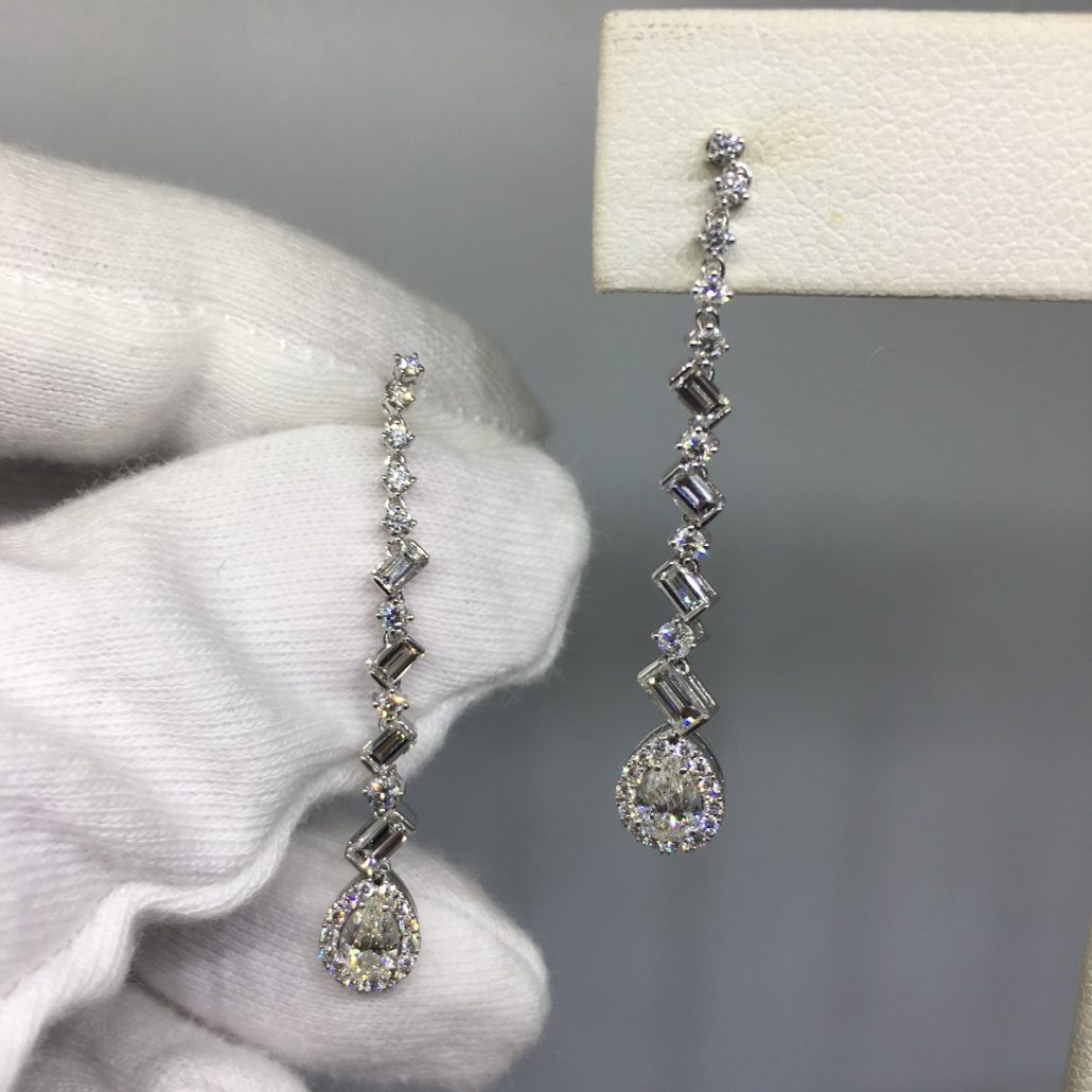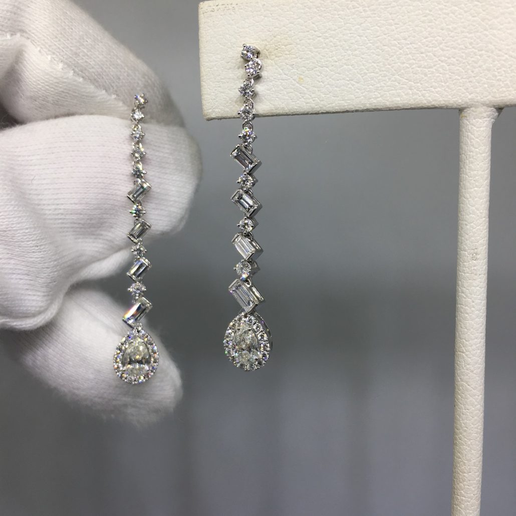 1.5 inches of diamond sparkle set in 18K White Gold, these earrings will cascade right into her heart.