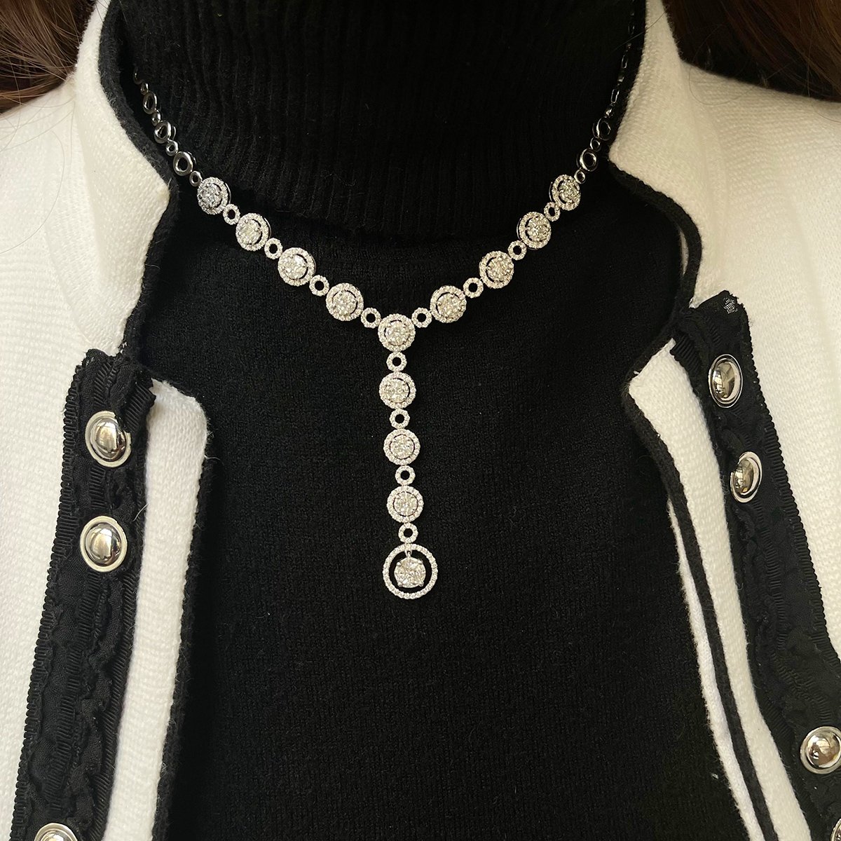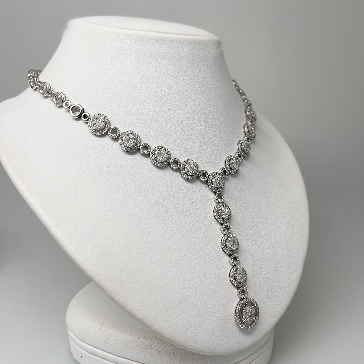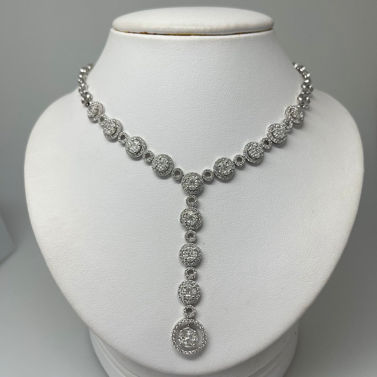 Diamond Elegance at its finest. This necklace is perfection – many different diamond cuts are set together to appear round!
