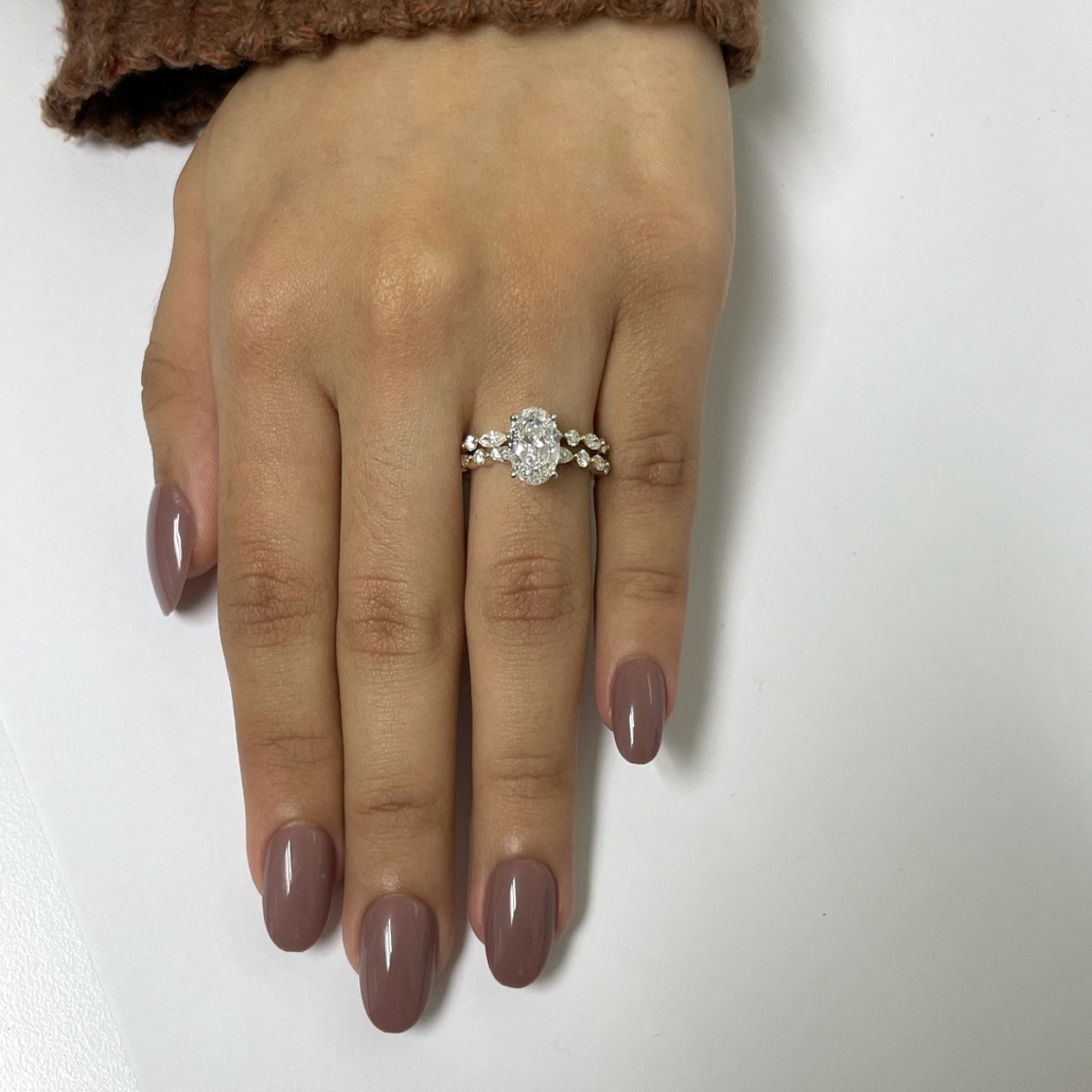 Each diamond—round and marquise—dances in balance along a lustrous yellow gold band, catching light the way love catches us: unexpectedly, beautifully, forever.