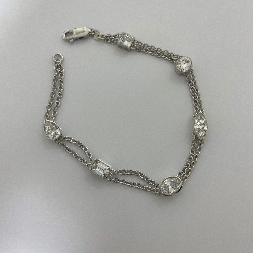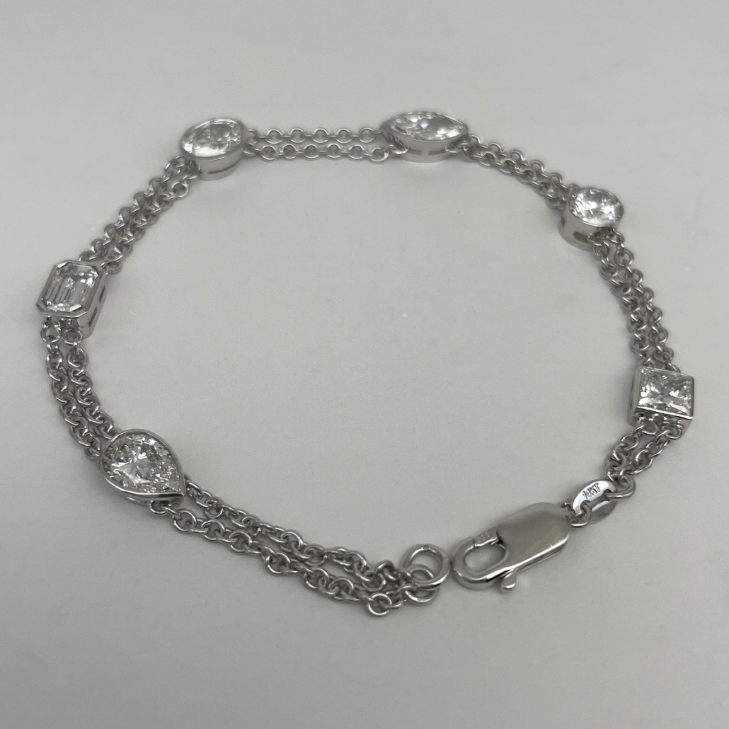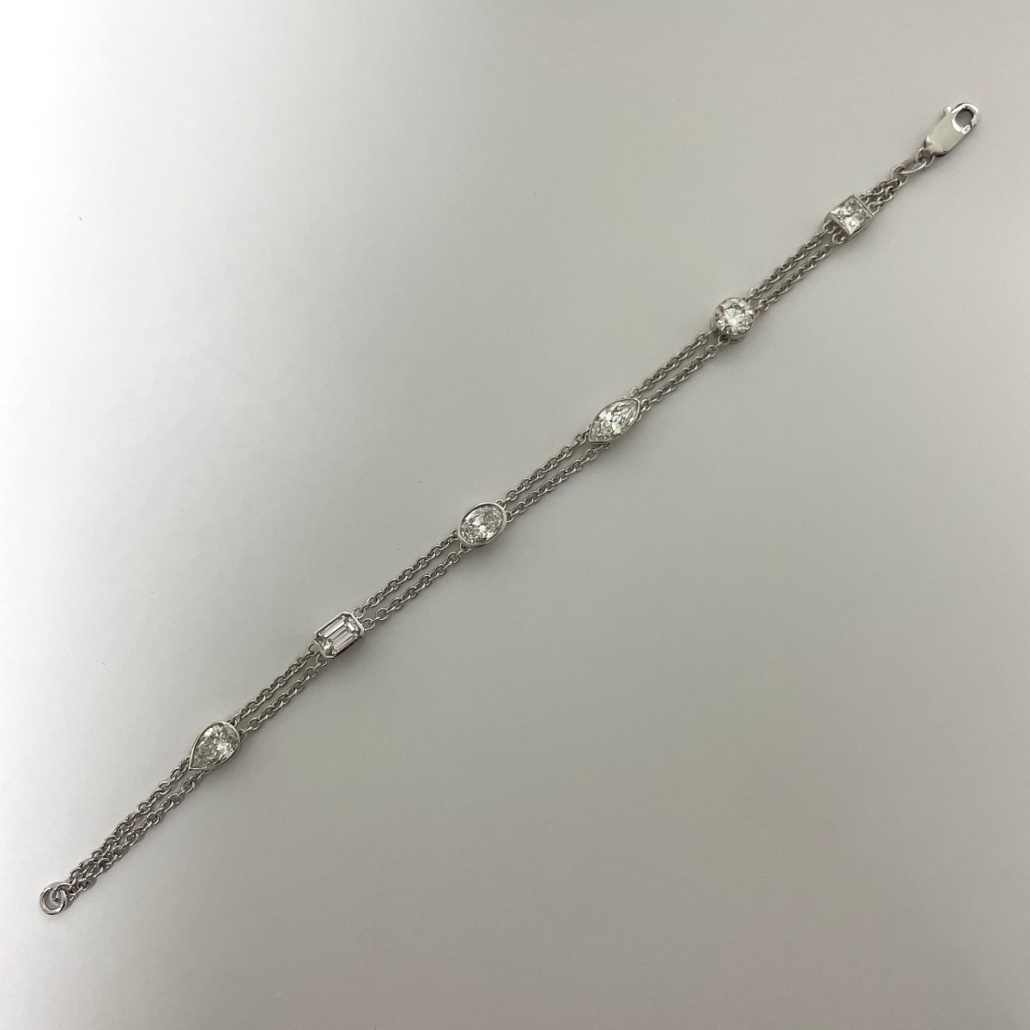 Tags 14k White, Air Line, bezel, Bracelet, Desire, Diamond, Double Chain, Elegant, emerald cut, Marquise, Multi-Shape, Oval, Pear Shape, Princess Cut, Round Brilliant