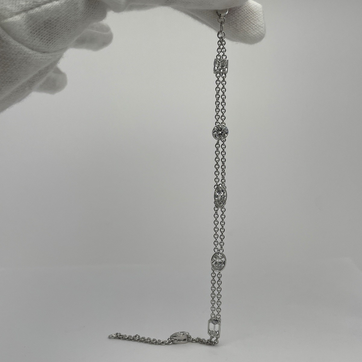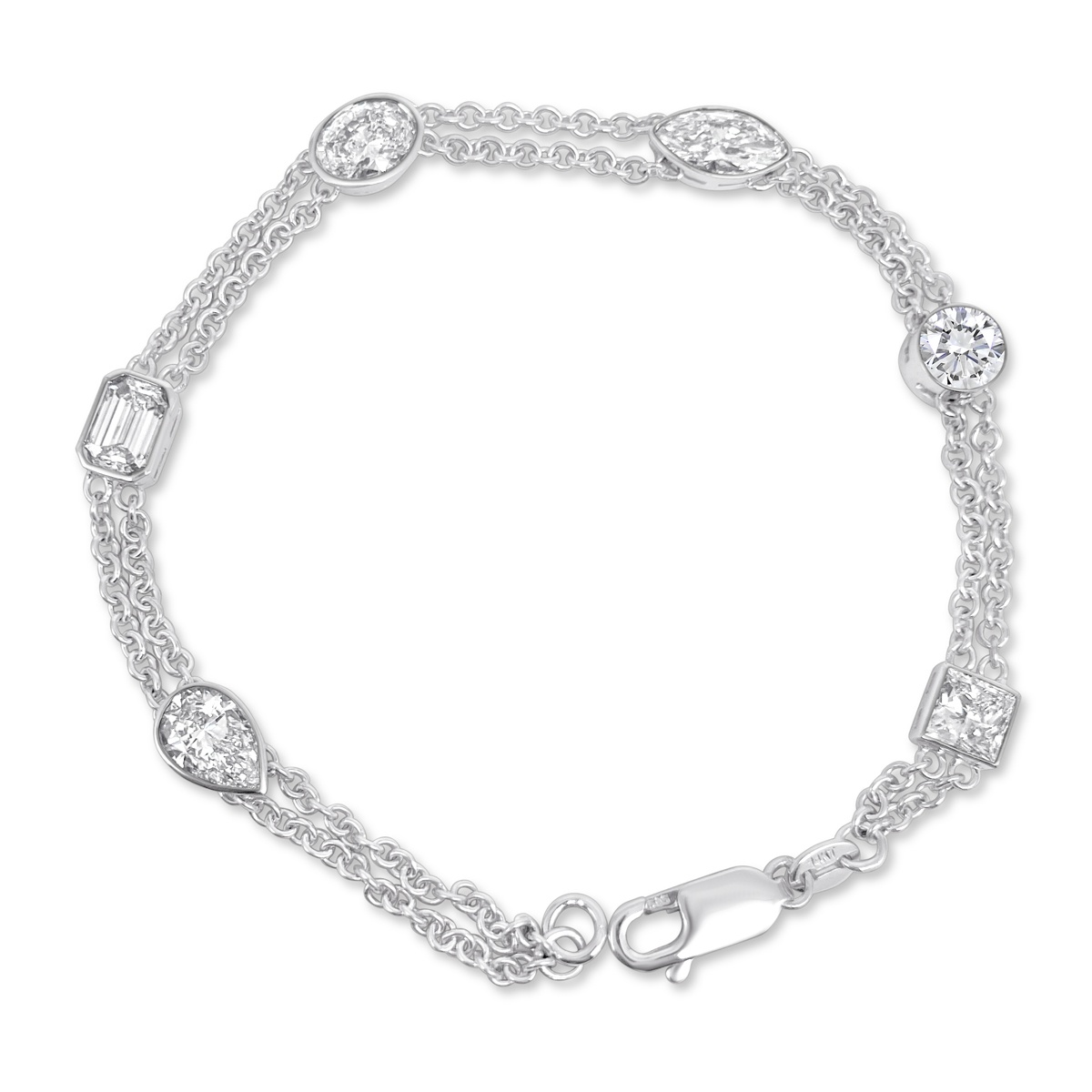 Tags 14k White, Air Line, bezel, Bracelet, Desire, Diamond, Double Chain, Elegant, emerald cut, Marquise, Multi-Shape, Oval, Pear Shape, Princess Cut, Round Brilliant