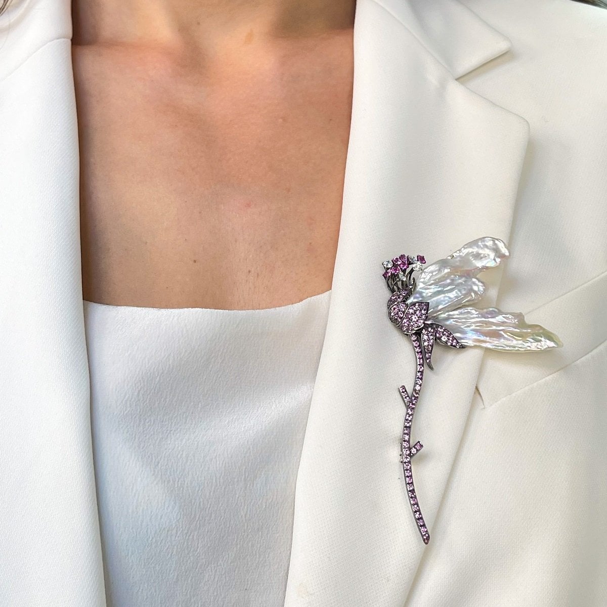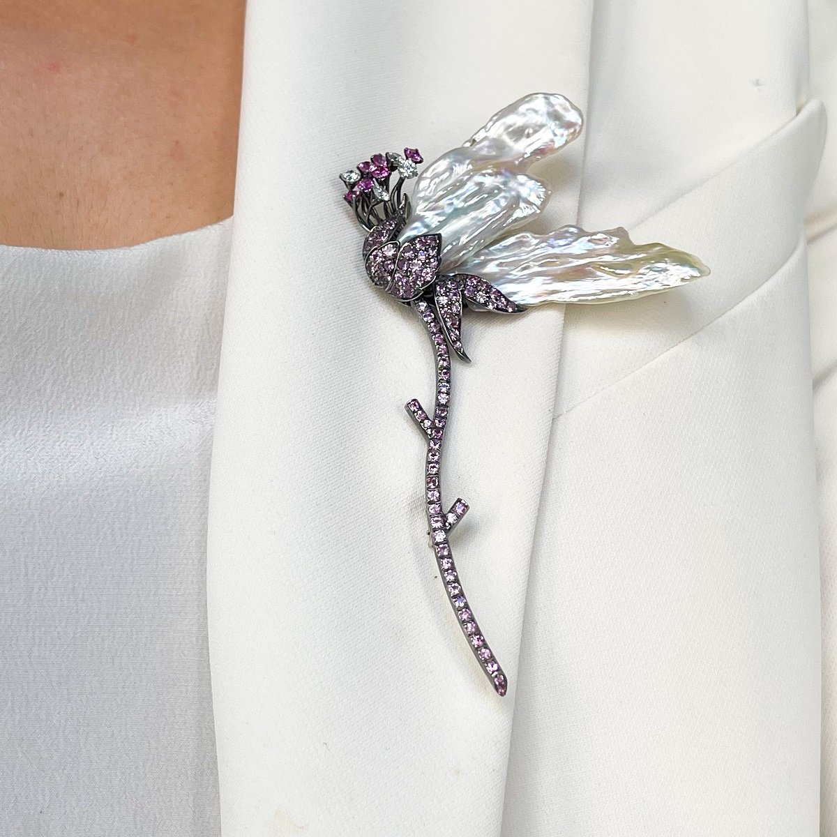 Tags Diamonds, Fairy, Fancy, Flying Rose, Freshwater Pearl, Jewelry As Art, pins, Sapphires