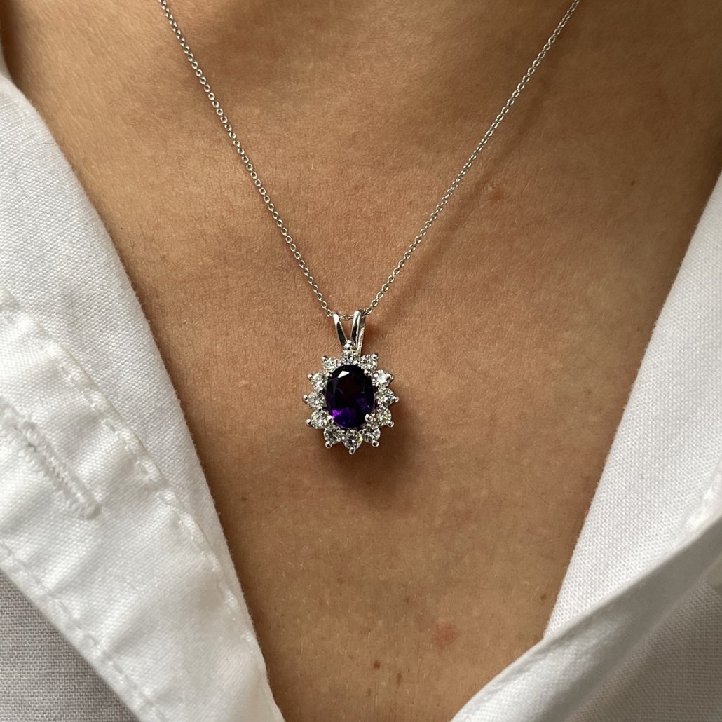 Tags 14k White Gold, Amethyst, Amethyst and Diamond, Pendant