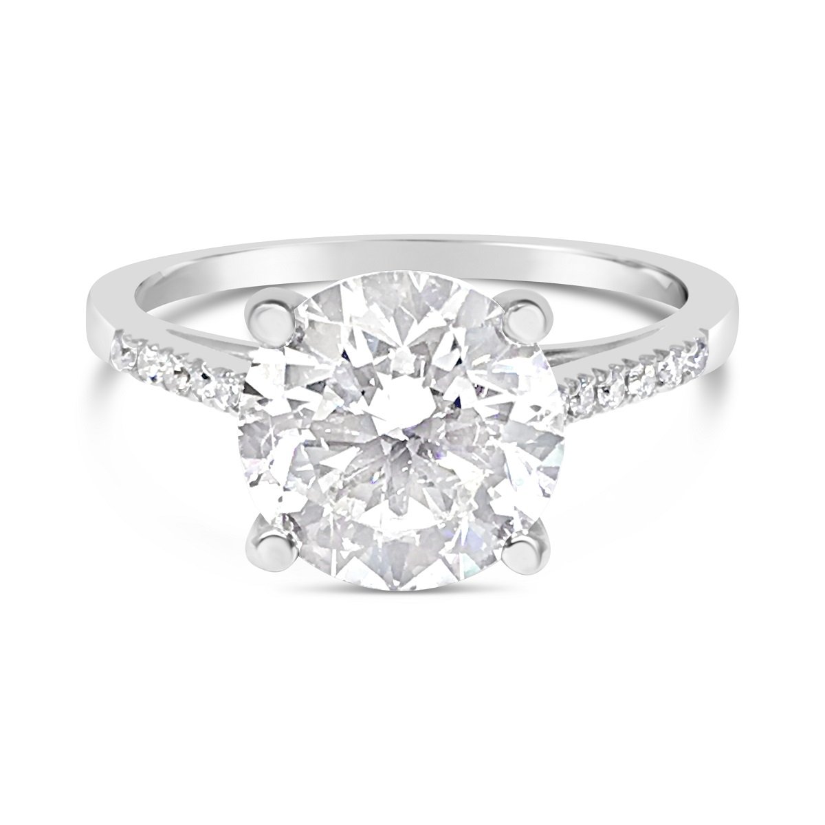 This ring is holding a natural round brilliant diamond that weighs 1.80 carats. The diamond is GIA certified and has a color grade of I and a clarity grade