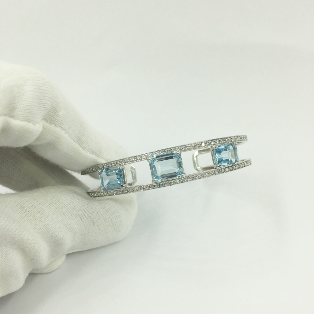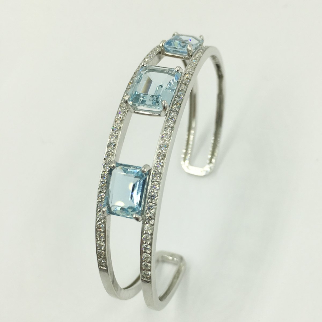 Categories 18K White, Aquamarine, Bangle & Cuff Bracelets, Custom Bracelet Not Avail, Custom Design, Diamonds, Fine Jewelry, Gemstone Bracelets, Gemstones, Master Bracelet, Master Stone, Master Stone 2, Metal Type