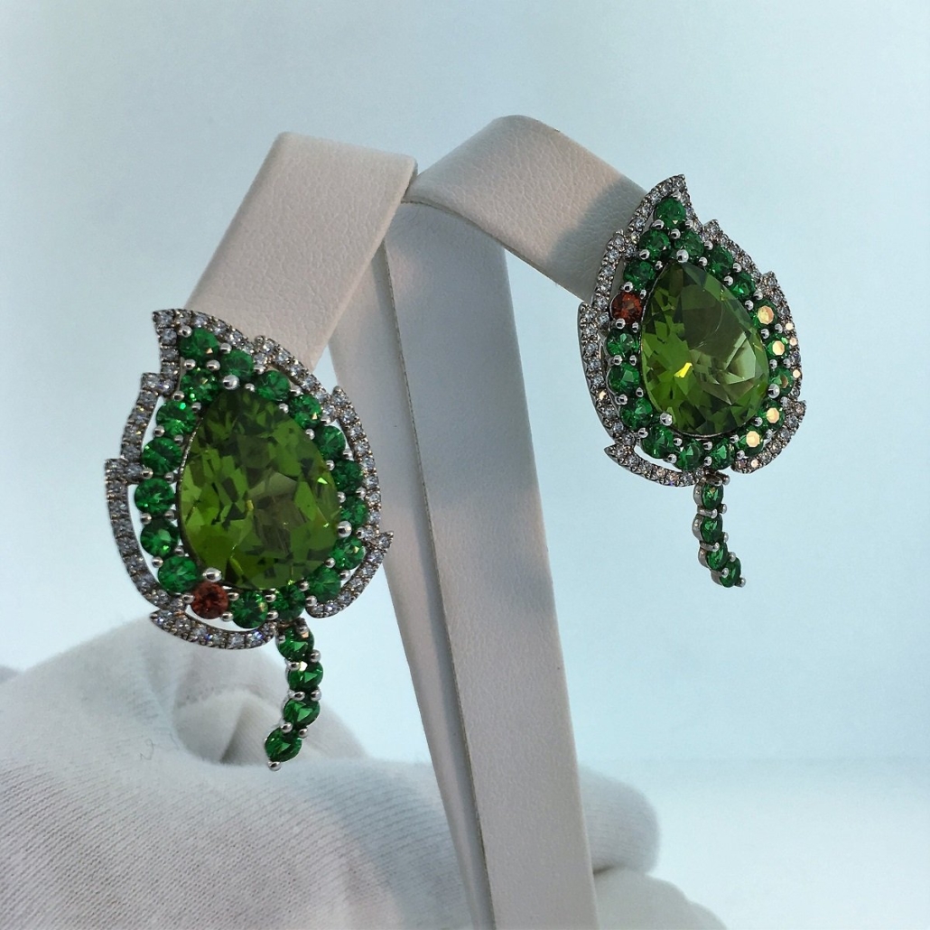 Tags 18k White, Cluster, Desire, Diamond, earrings, Fancy, Floral, garnet, gemstone, Green, Magnificent, Orange, Peridot, Tsavorite