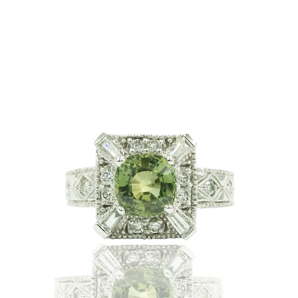 Green Sapphire is the epitome of trust, loyalty, integrity & fidelity.  Sublime for both the heart and soul – the perfect stone to represent the engagement of two lives.