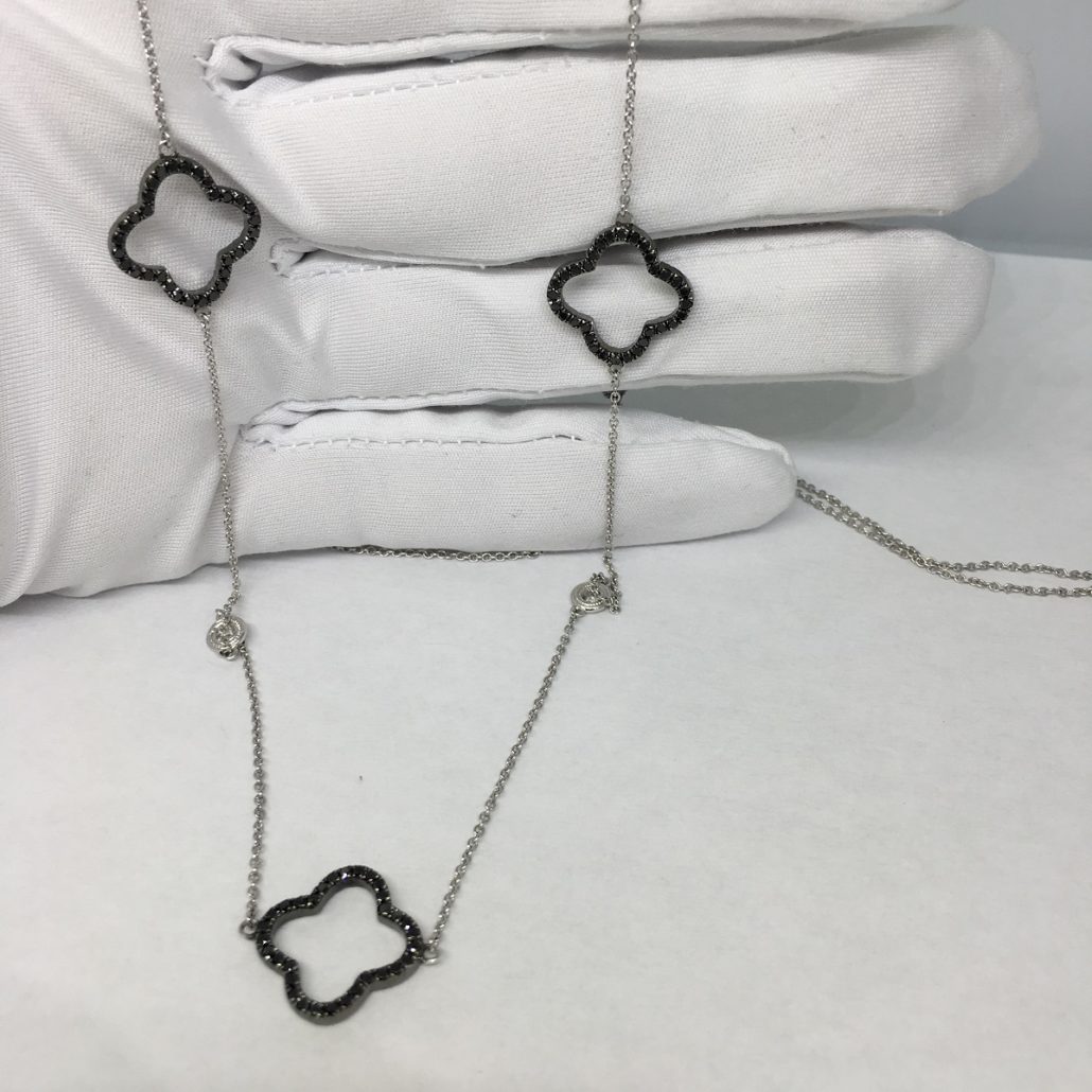 Black & White Opera Length Diamond Trefoil Necklace 1033