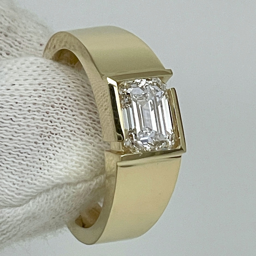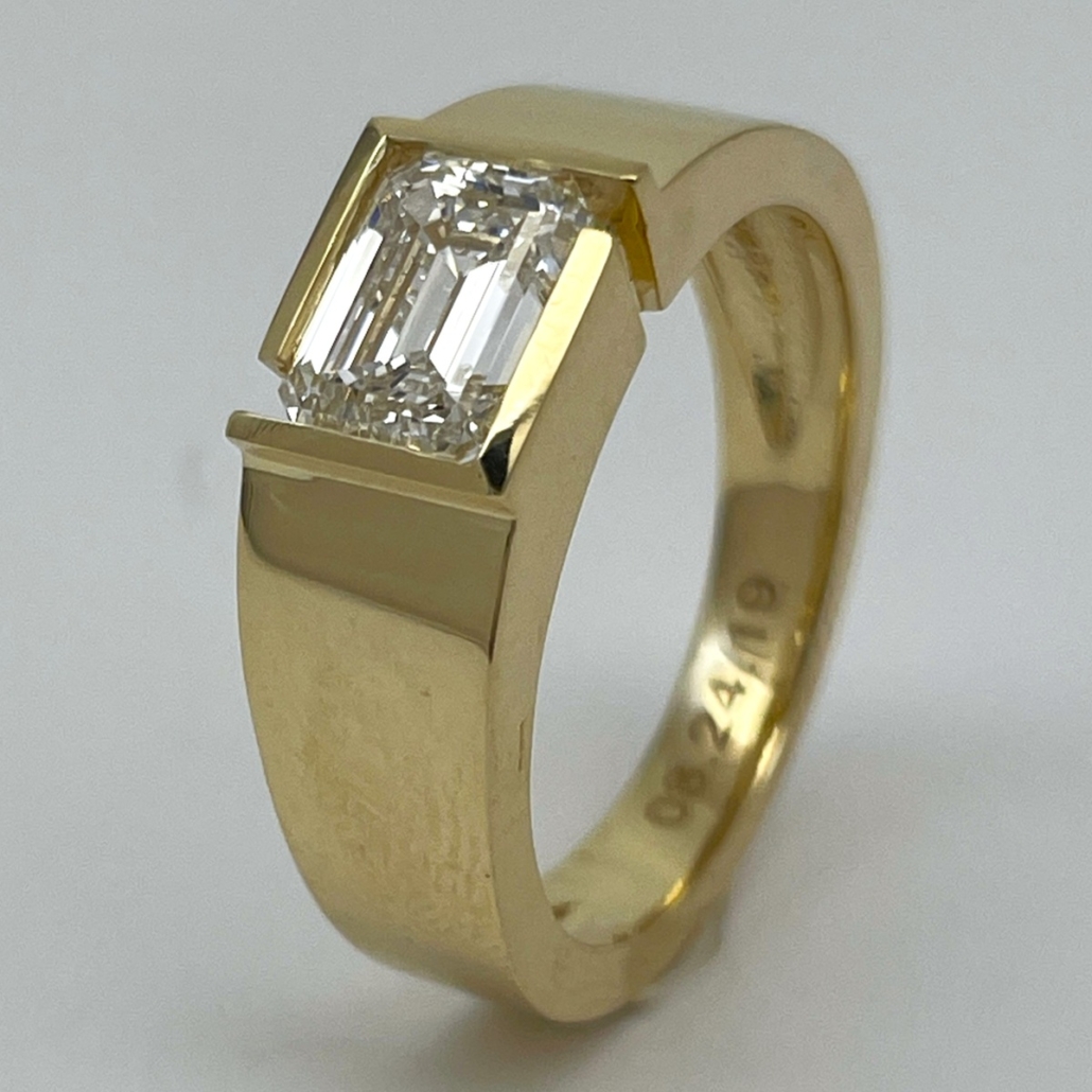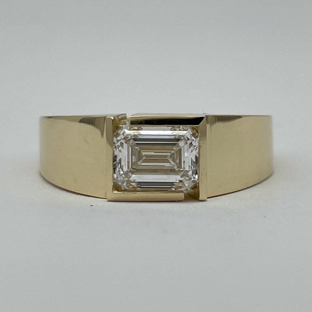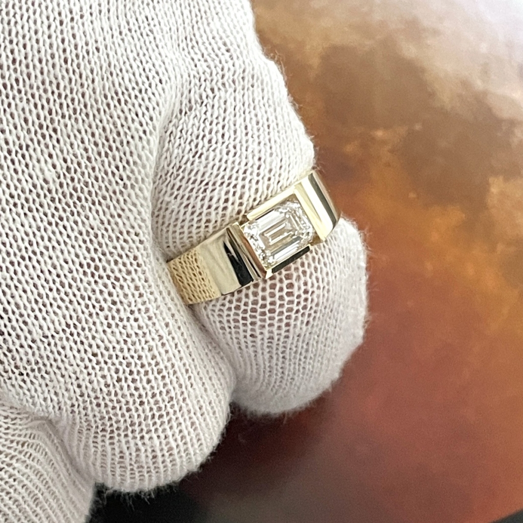 Precision. Power. Presence. A bold emerald-cut diamond set in pure gold speaks volumes—without saying a word.