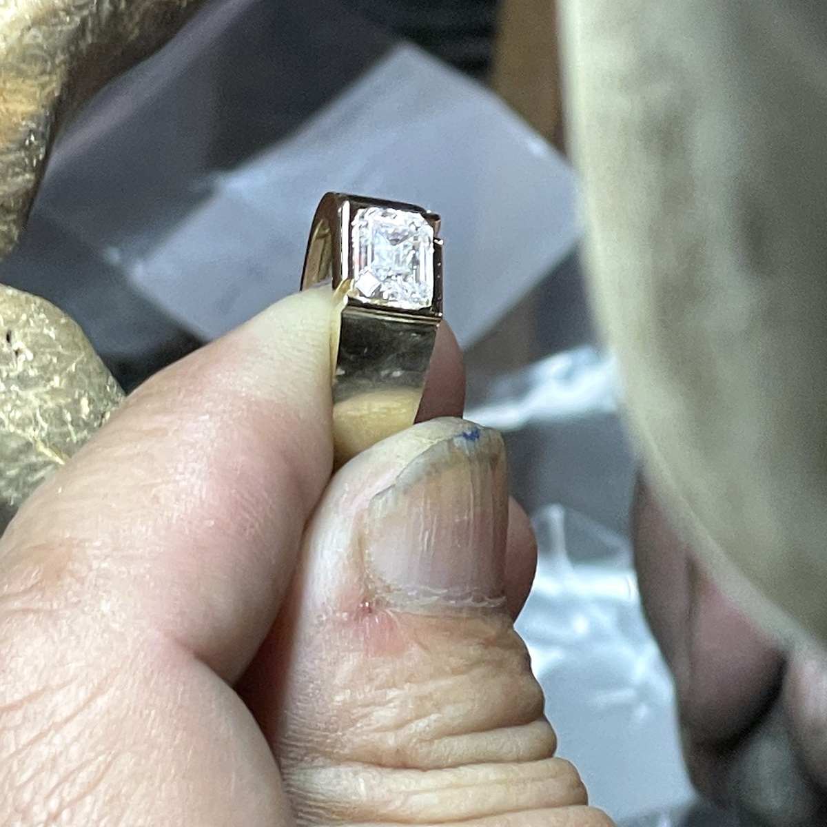 Tags 14k Yellow, Art Deco, Channel Set, Diamond, emerald cut, Gentlemen's, Pinky Ring