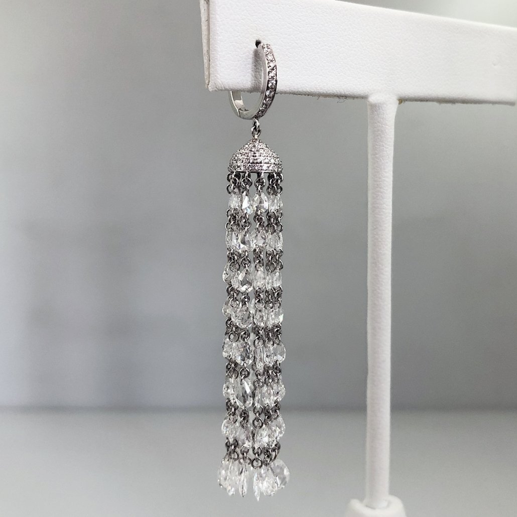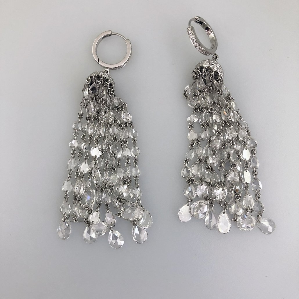 Tags 18K White Gold, chandelier earrings, custom made jewelry, Dangle Earrings, Diamonds, Holiday 2020, holiday gifts, rose cut diamonds