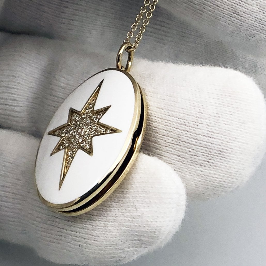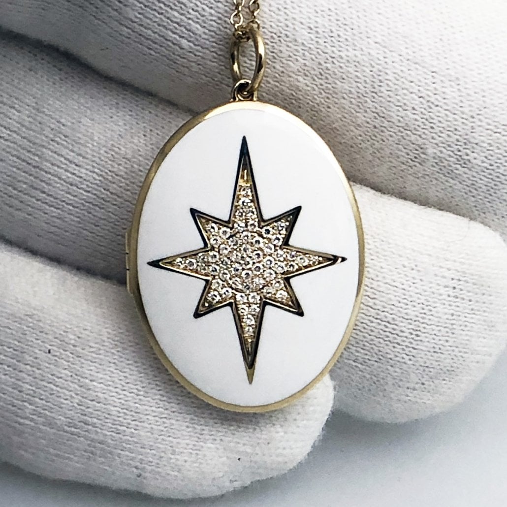 Carry a picture of that special someone close to your heart in this white enamel locket featuring a diamond studded star.