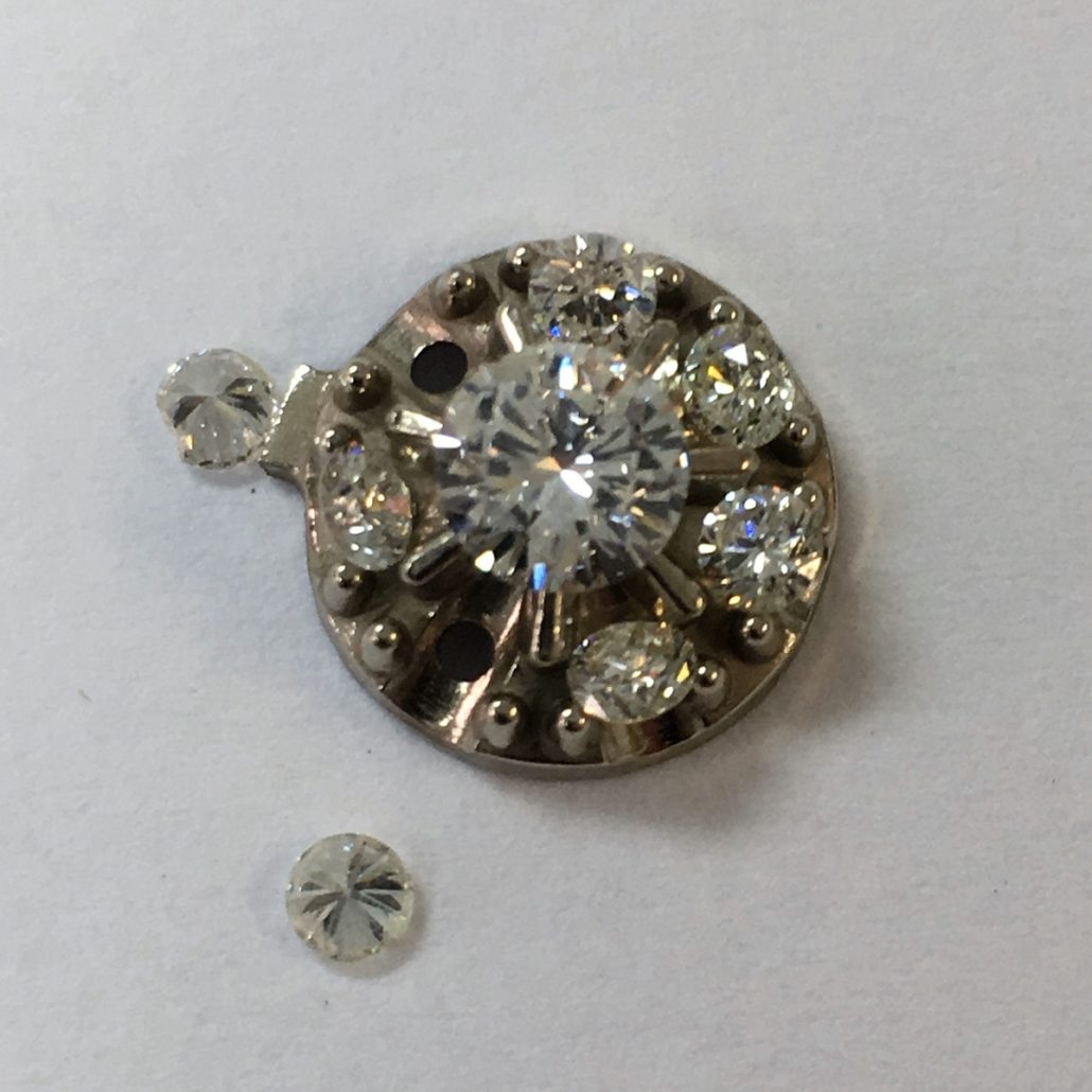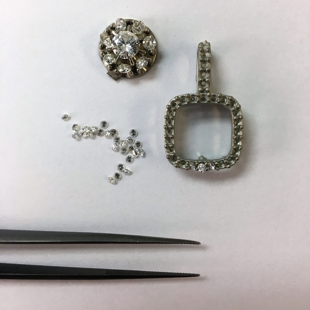 This pendant was custom made for our client using their diamonds and our expertise. Our client had jewelry in her jewelry box for a long time, not being worn. One day, she brought it to Susan for consultation and suggestions. Look what we made!