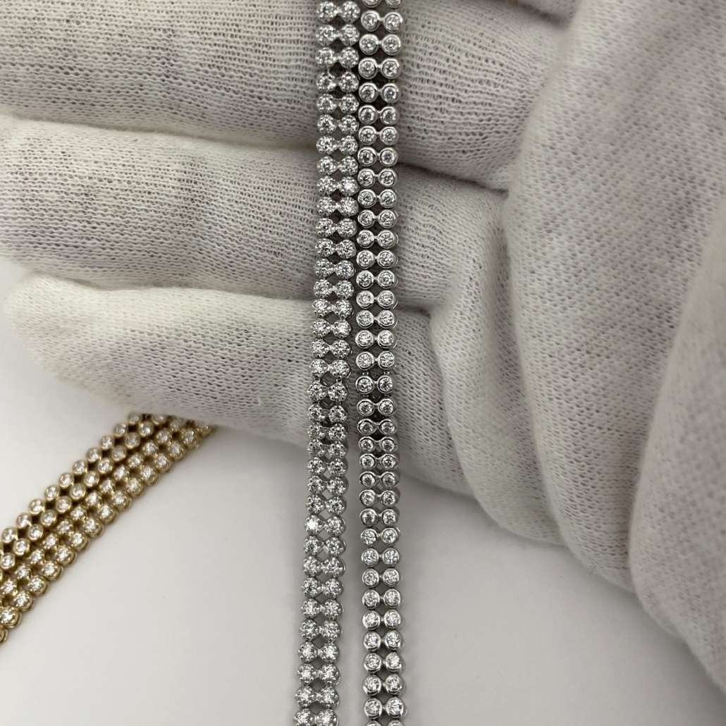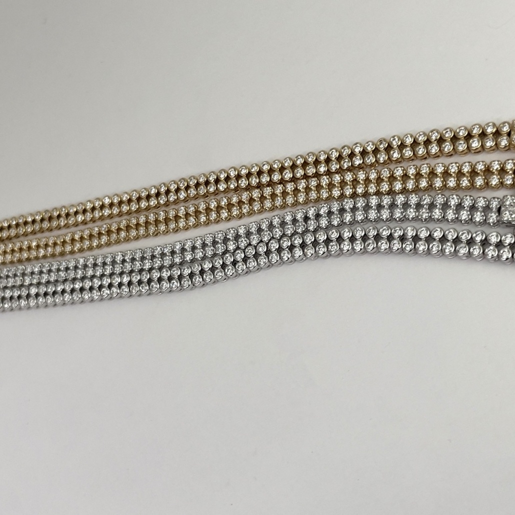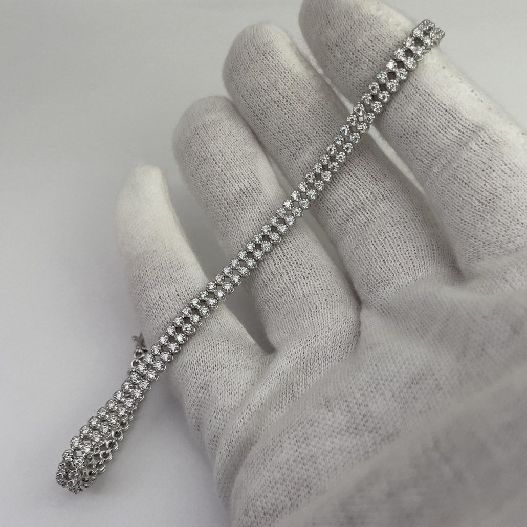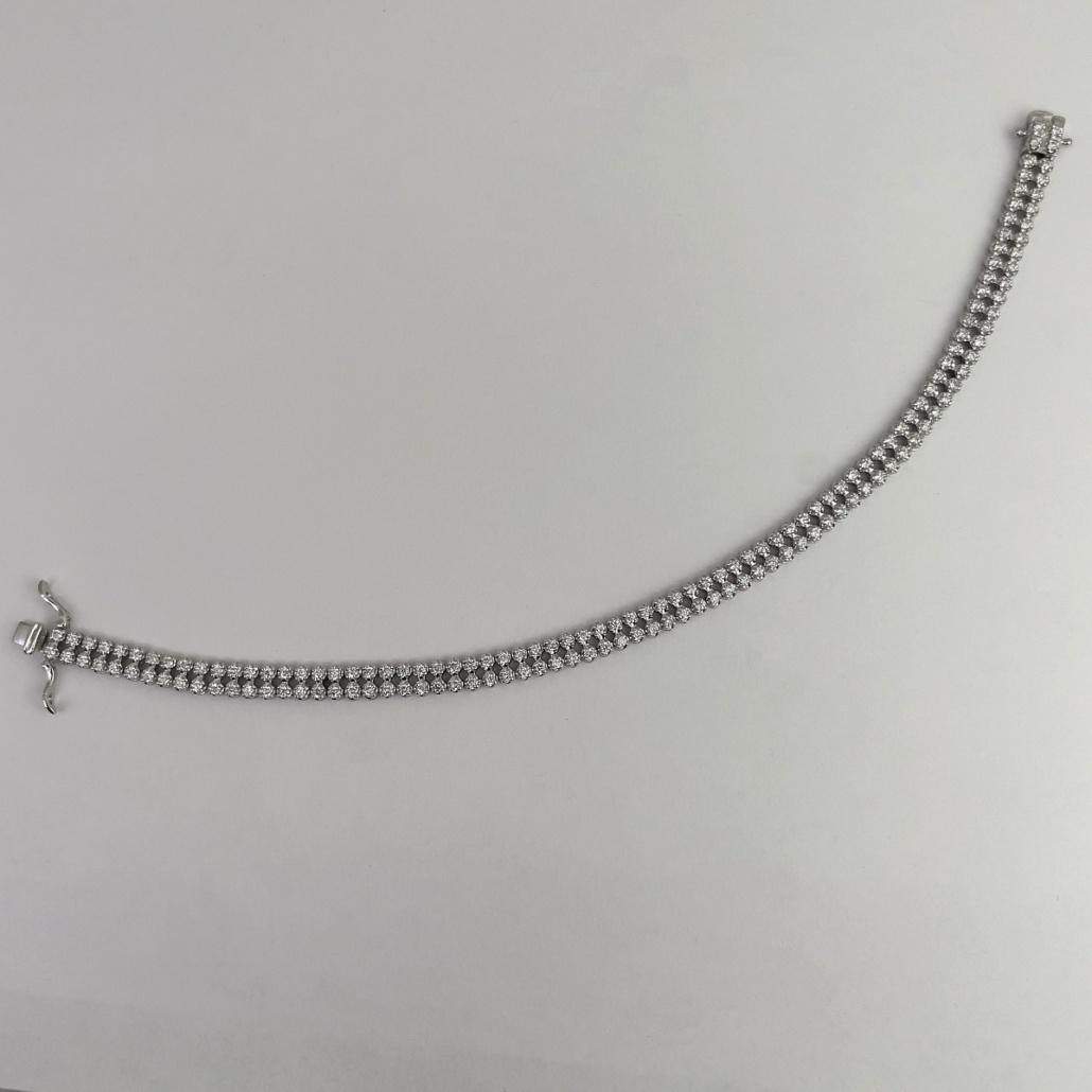 In line bracelet made with 14k white gold and lab grown diamonds set with buttercup prongs design.