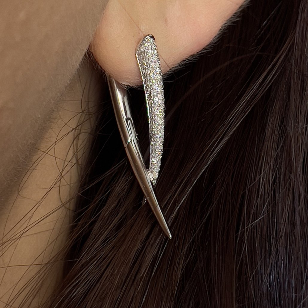 Tags Diamond and Gold Dangling Earrings, Golden Horns, Knife Edge Earrings, Sleek Golden Horns