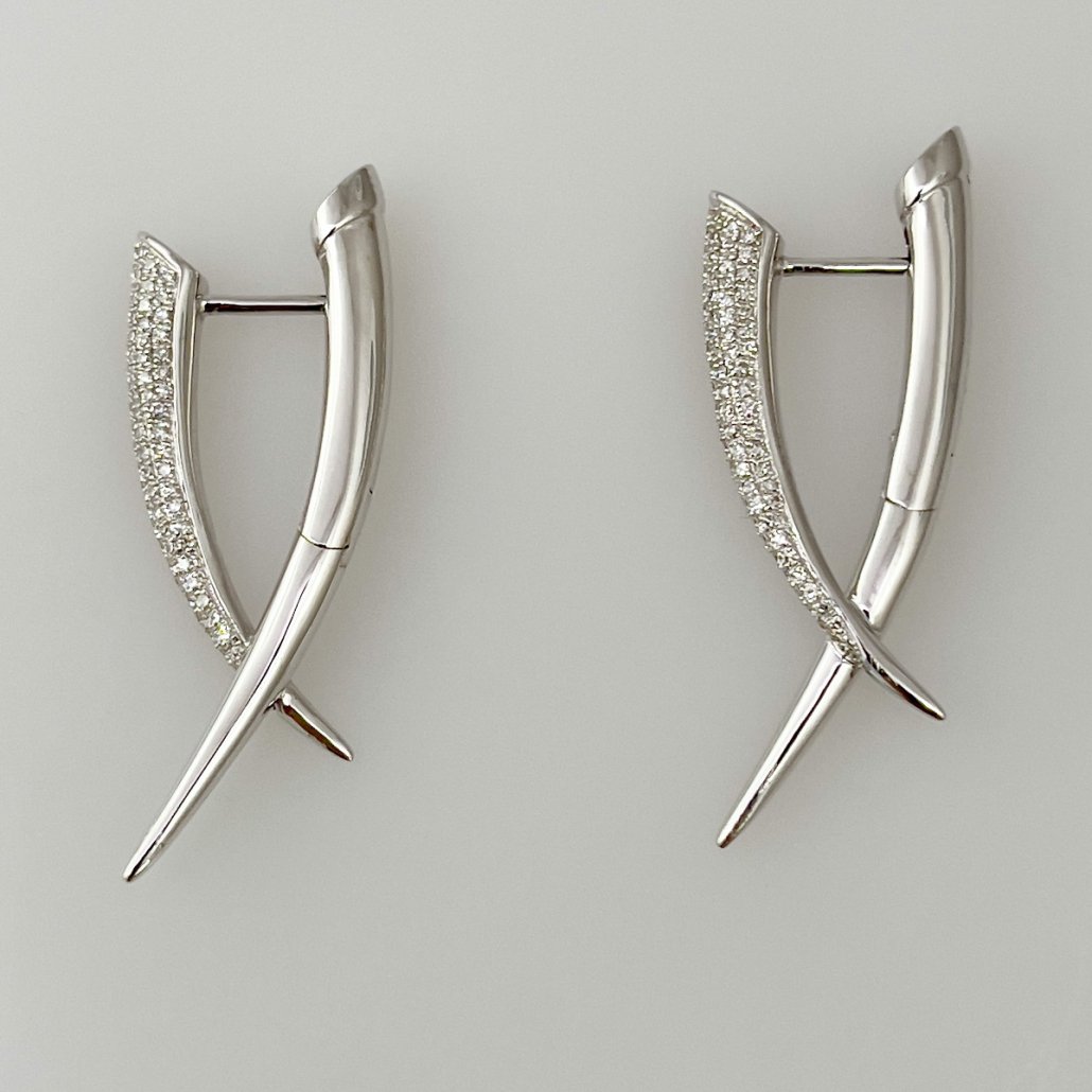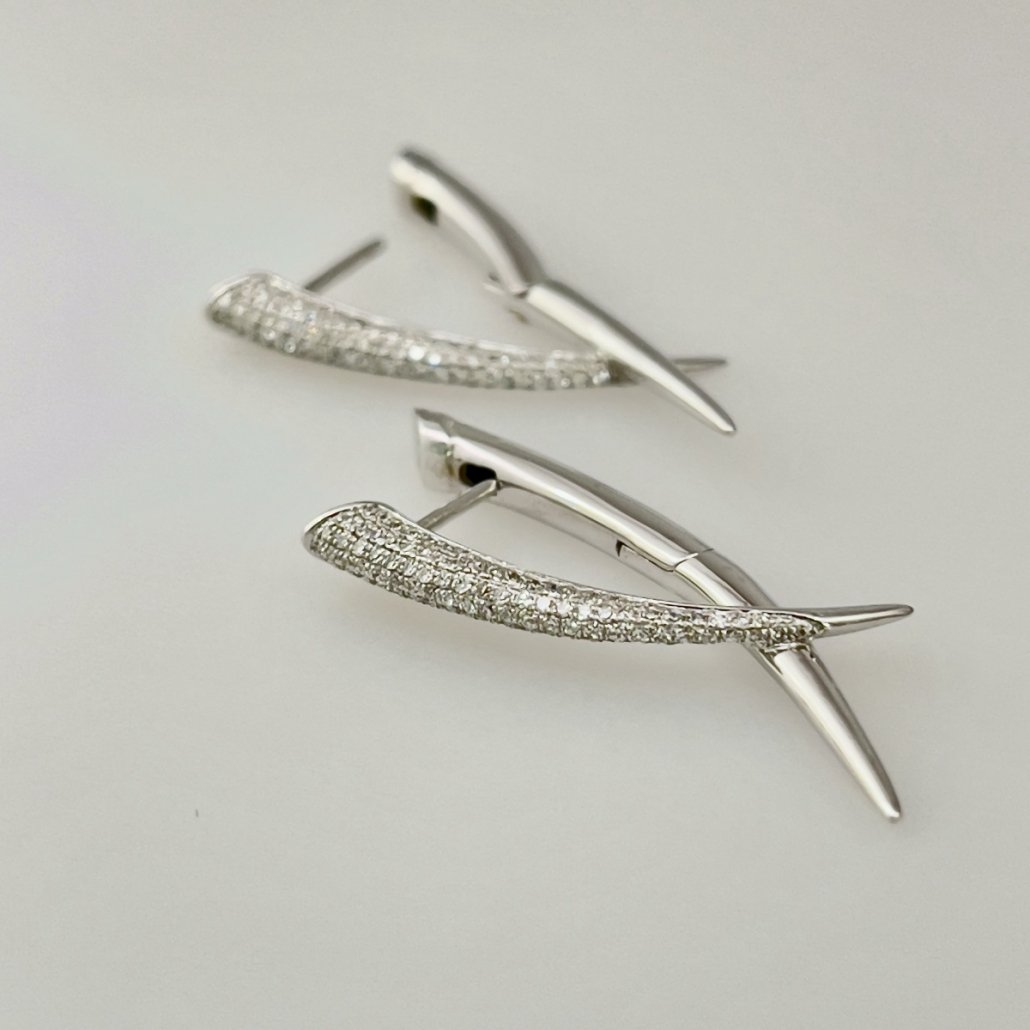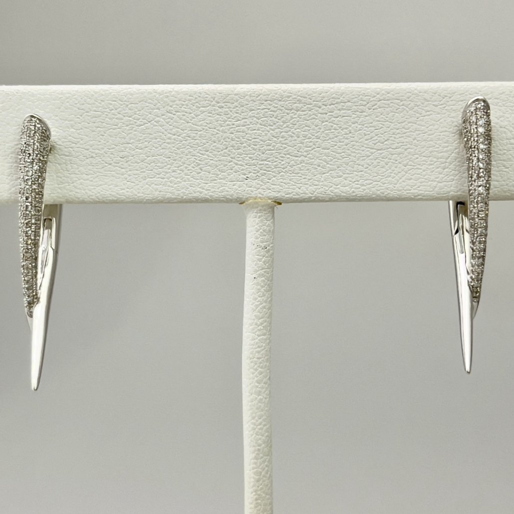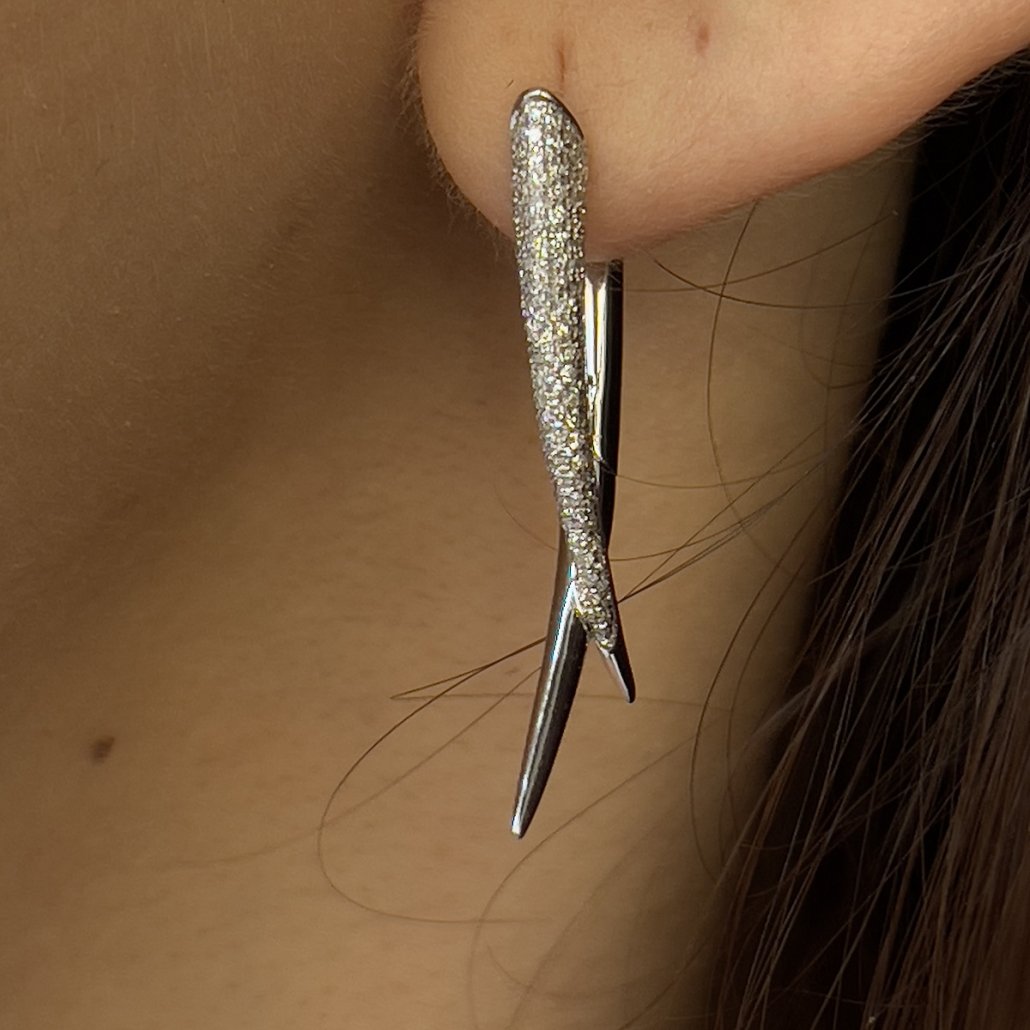 Tapered bar dangles are joined at the post. The smaller bar is diamond encrusted.