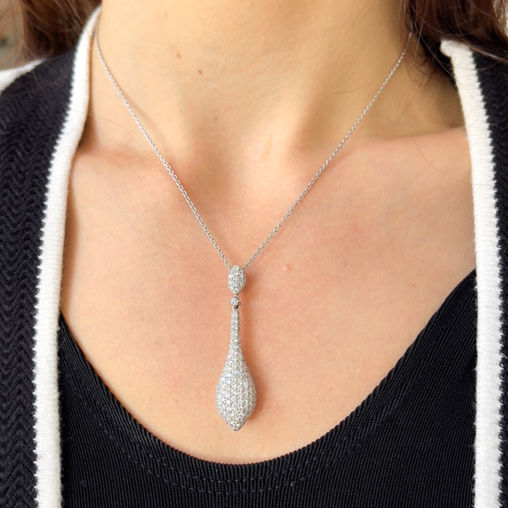 Water drop diamond pendant is a stunning statement – wear with all black to make it really pop!