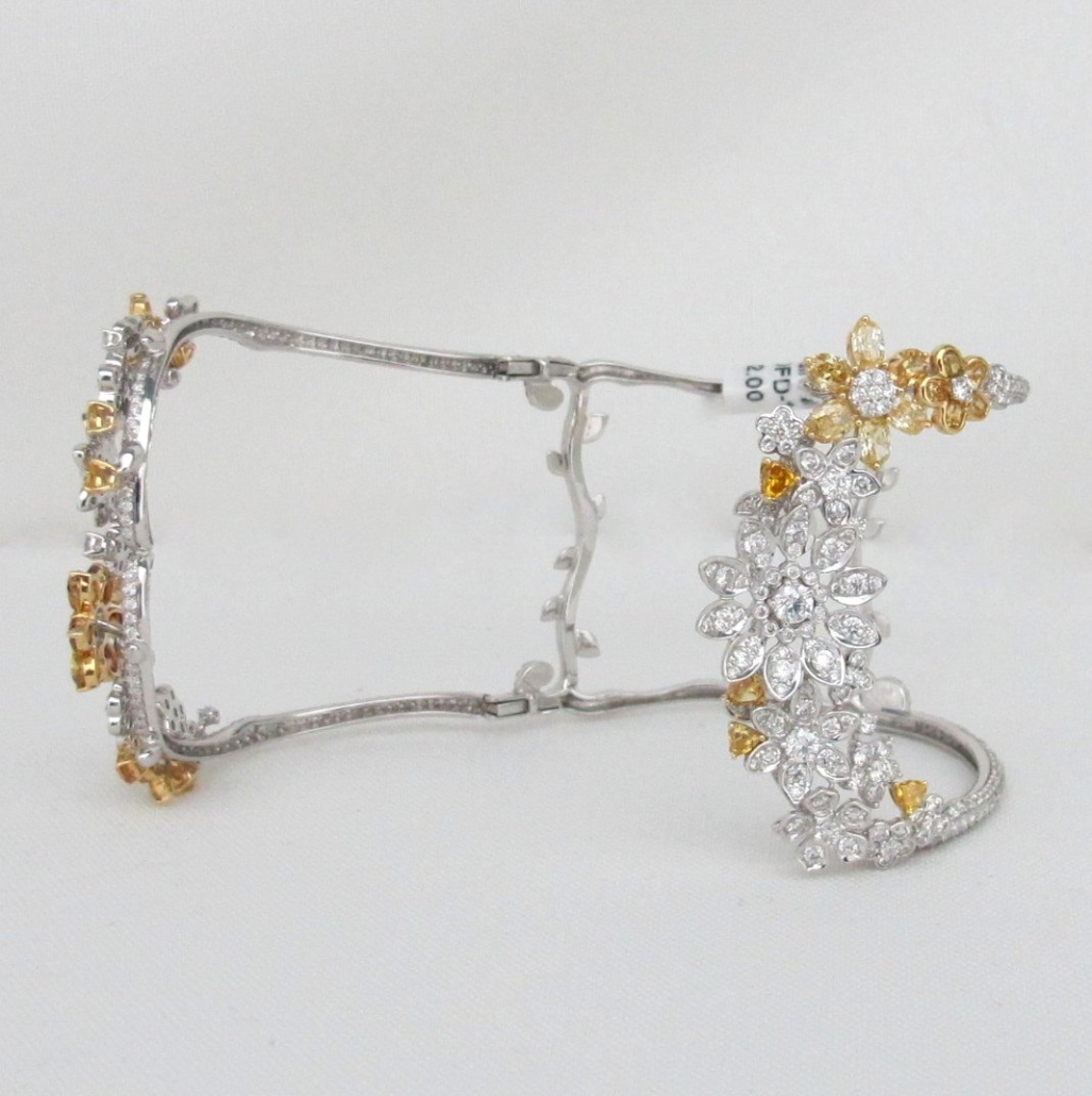 Tags Cuff Bracelet, Diamond Bangle, Diamond Bracelet, Diamond Cuff Bracelet, Diamond Flower, Diamond Flower Bracelet, Flower Bracelet, flower design, Flower Design Bracelet, Orange Diamond, Orange Diamond Jewelry, White Gold Cuff Bracelet, Yellow Diamond, Yellow Diamond Jewelry