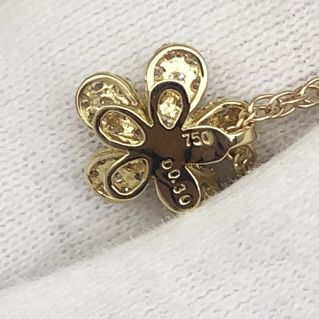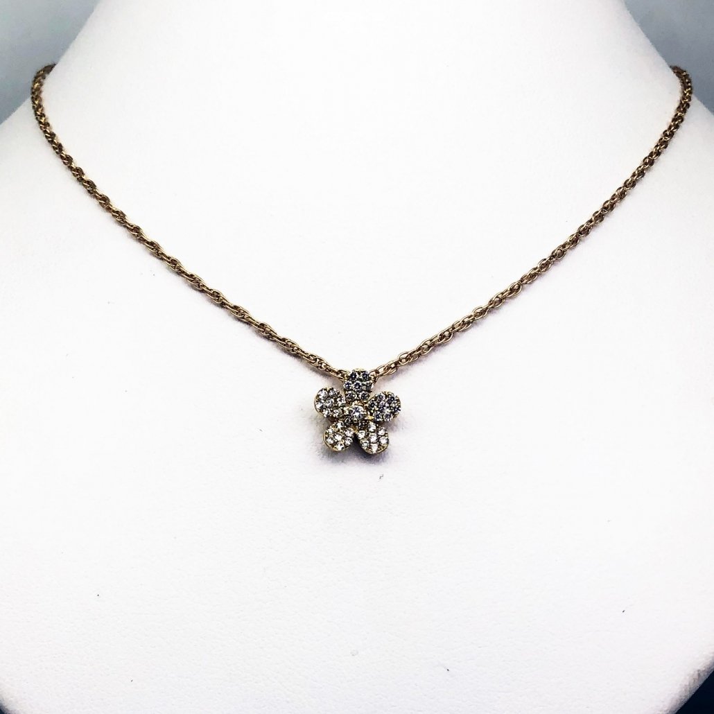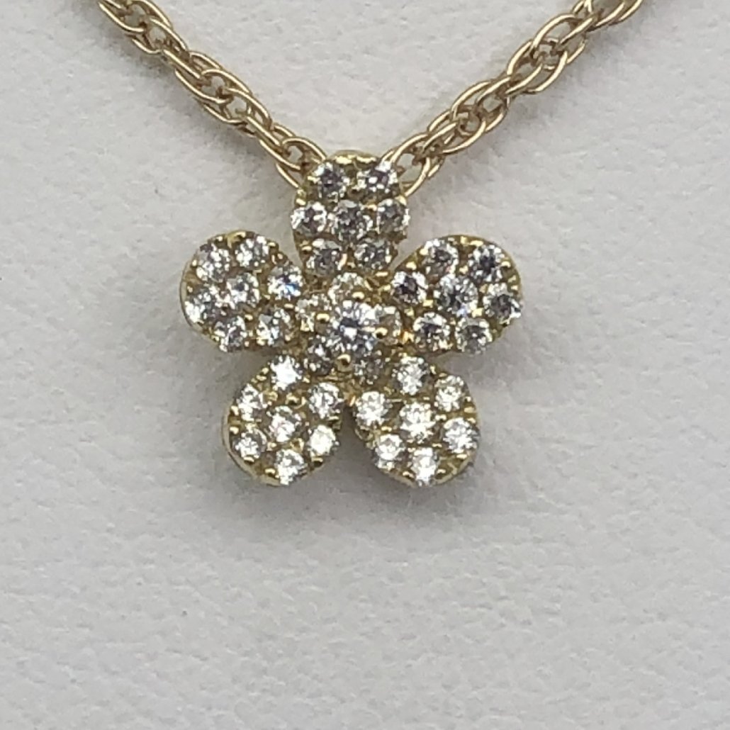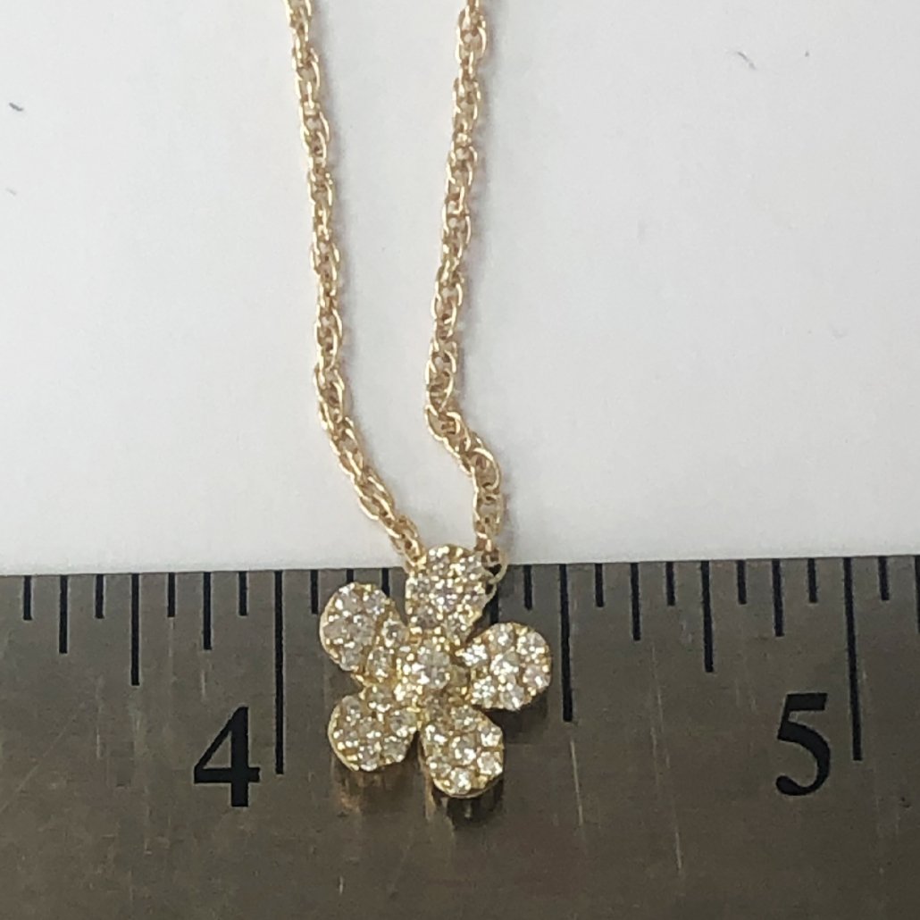 This dainty and feminine flower diamond pendant necklace, crafted in 18K Yellow Gold, is a classic beauty.