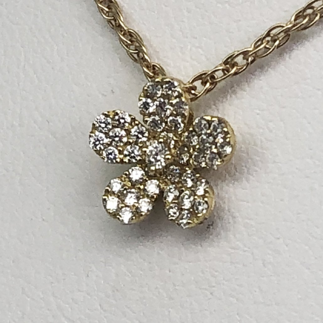 Five Petal Yellow Gold & Diamond Pendant with Chain 1819-32