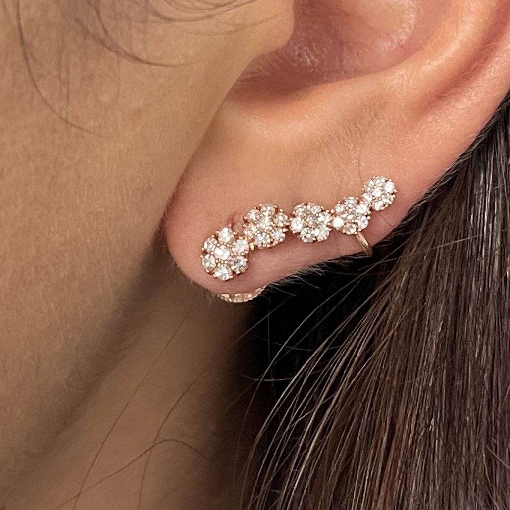 The flowering Lilac Vine, known as the Happy Wanderer, was the perfect inspiration for this free-spirited “pair” of earrings. The ear crawler is one the most popular forms of the asymmetrical earring trend, and goes with everything from casual chic to elegant formal attire.