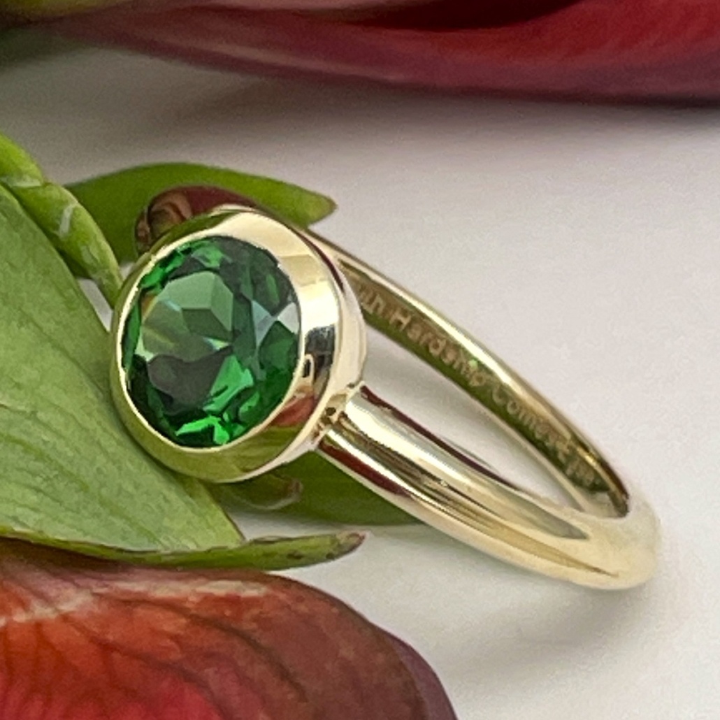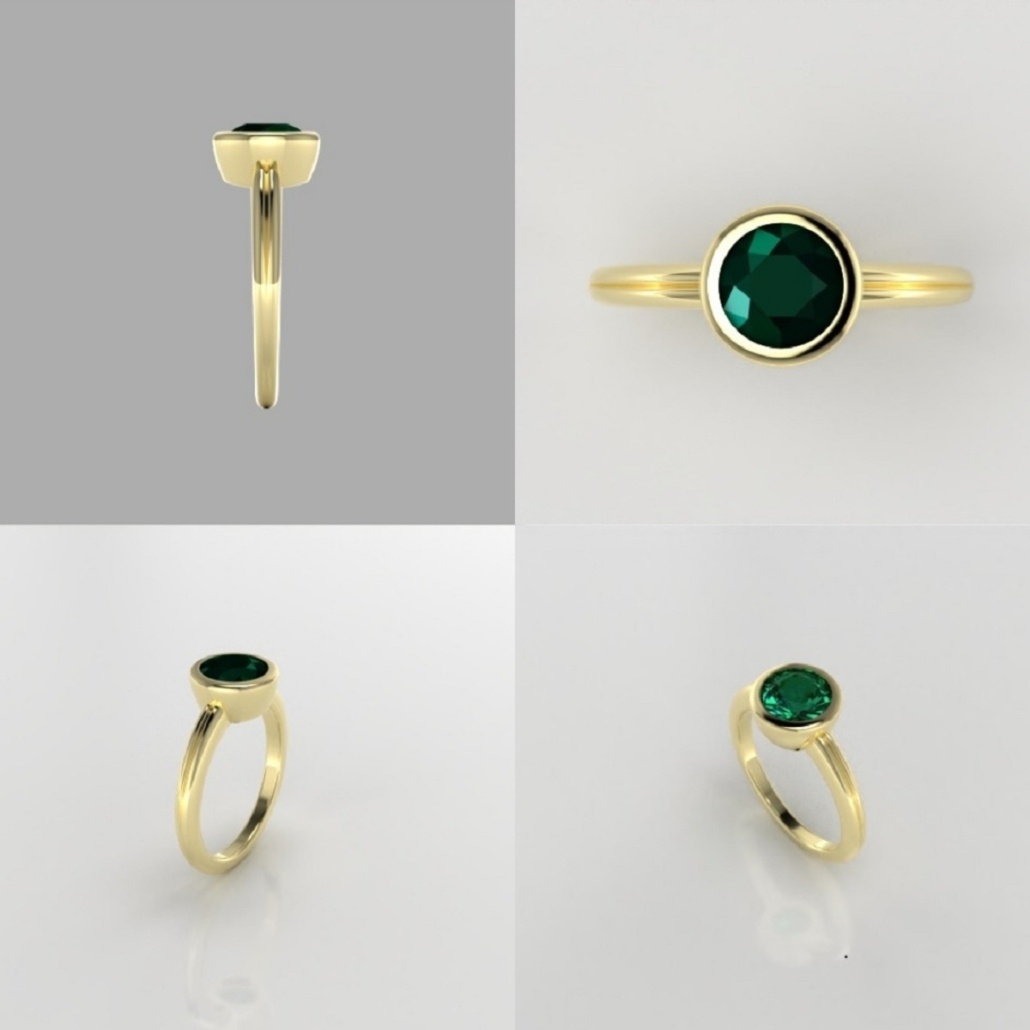 Tags 14k Yellow, bezel, Classic, Emerald, gemstone, Green, Grooved, Ring, solitaire