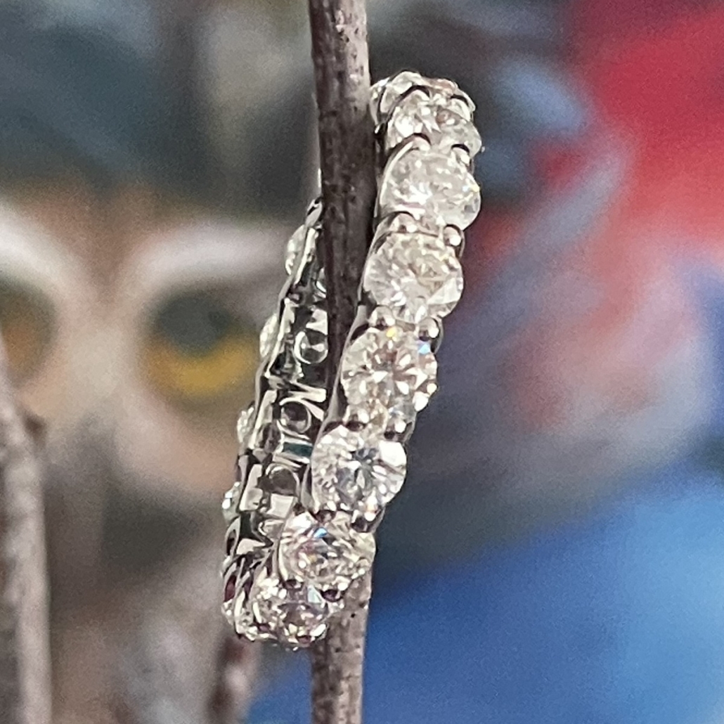 Celebrate eternal elegance with this stunning platinum eternity band, meticulously set with dazzling round diamonds. Each stone is chosen for exceptional sparkle, creating a seamless circle of radiance symbolizing endless love