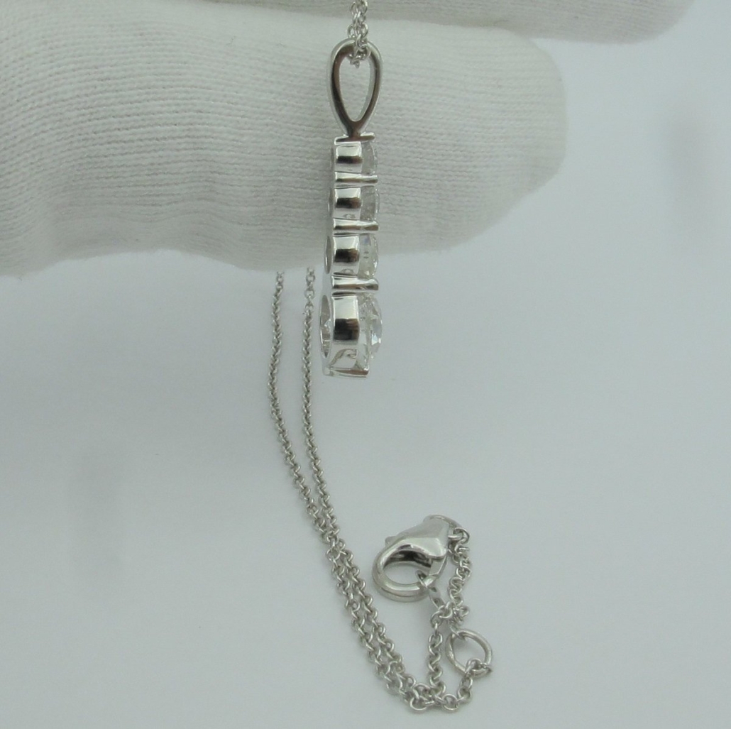 This diamond pendant is made with 14k plumb white gold and set with natural round brilliant diamonds in shared prongs.